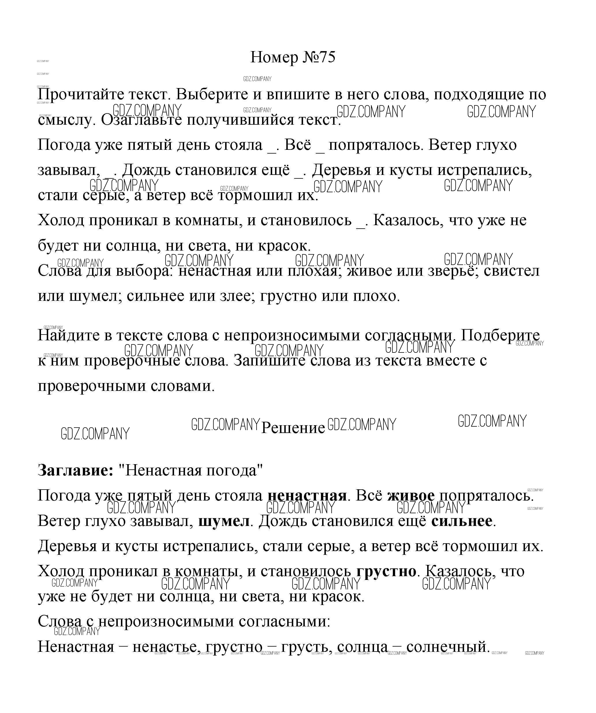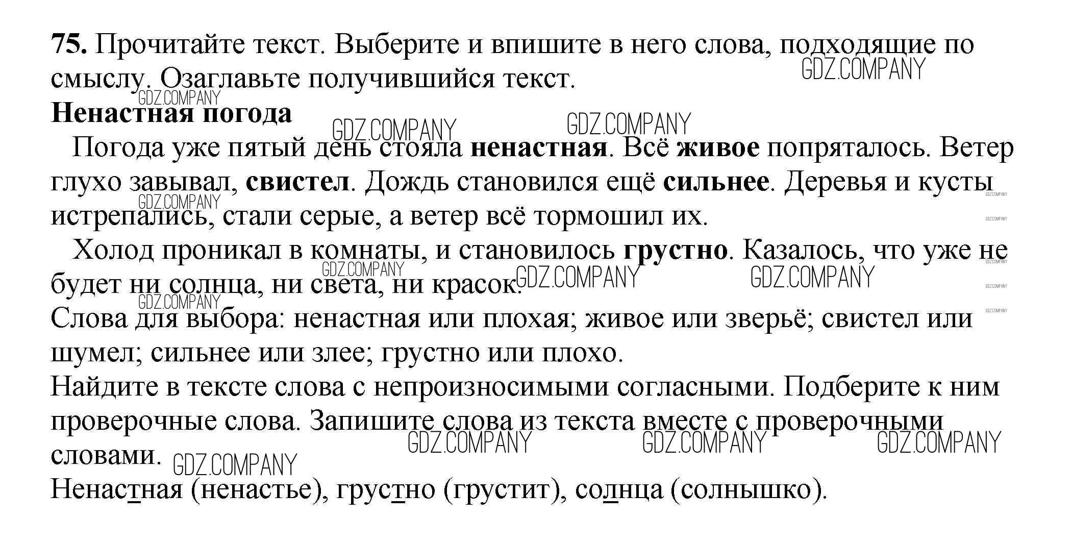Здесь готовые ответы по Русскому языку за 3 (третий) класс от Климанова, Бабушкина Рабочая тетрадь Перспектива  (издательство: Просвещение от 2018 г.) № 75