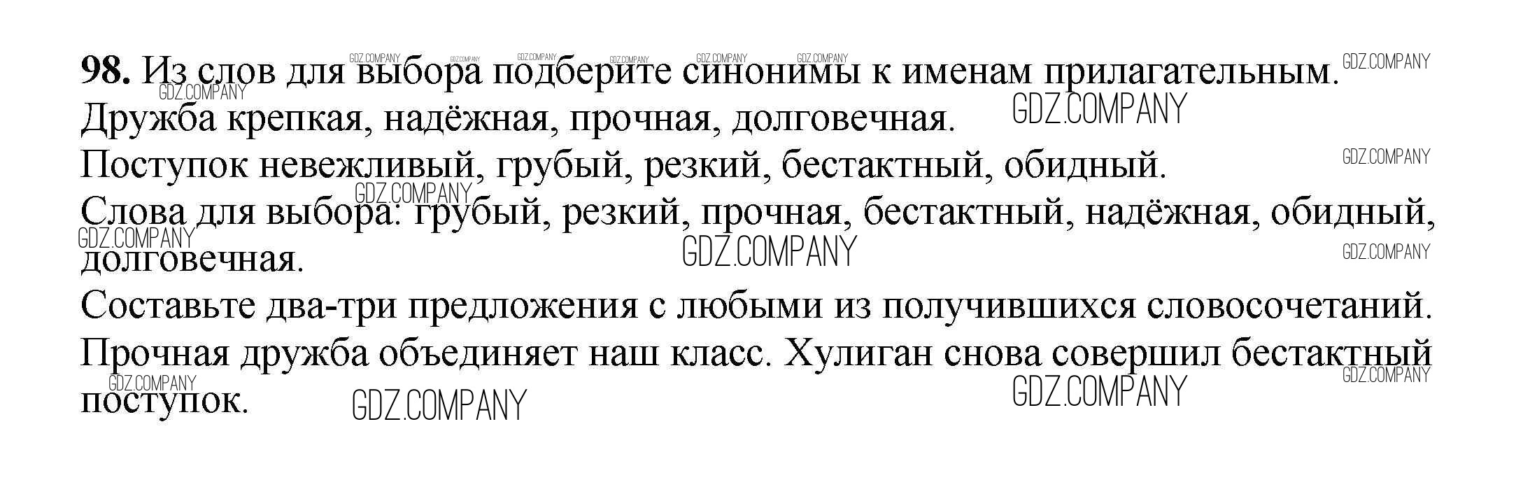 Здесь готовые ответы по Русскому языку за 3 (третий) класс от Климанова, Бабушкина Рабочая тетрадь Перспектива  (издательство: Просвещение от 2018 г.) № 98