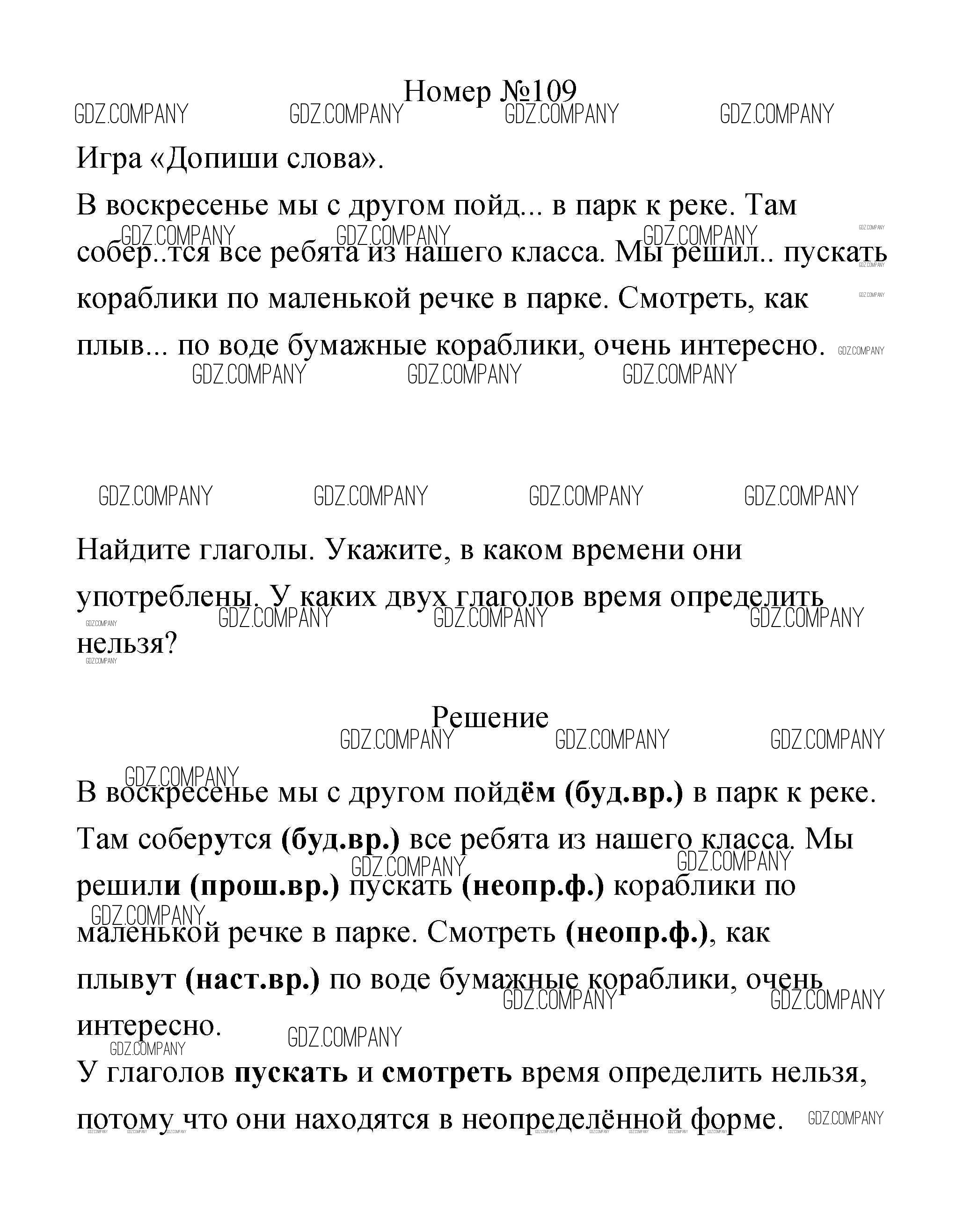 Здесь готовые ответы по Русскому языку за 3 (третий) класс от Климанова, Бабушкина Рабочая тетрадь Перспектива  (издательство: Просвещение от 2018 г.) № 109