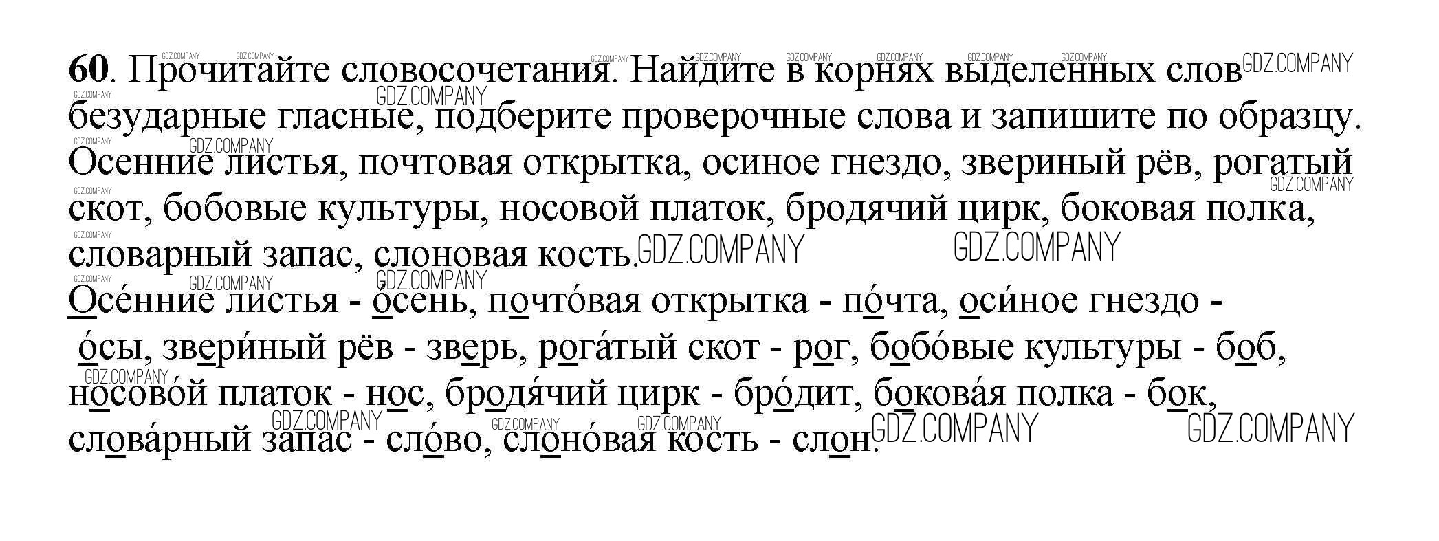 Здесь готовые ответы по Русскому языку за 3 (третий) класс от Климанова, Бабушкина Учебник Перспектива  (издательство: Просвещение от 2014 г.) № 60