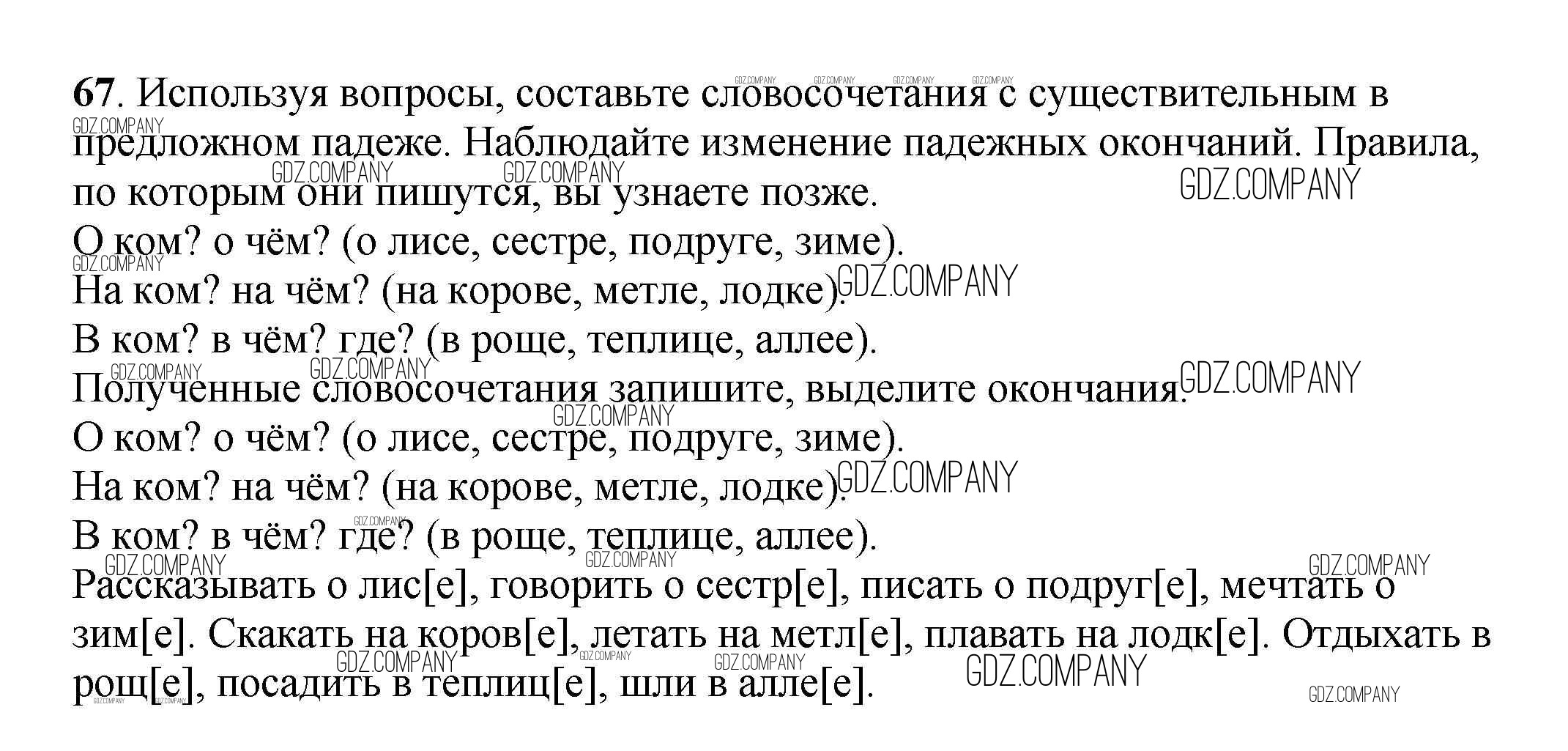 Здесь готовые ответы по Русскому языку за 3 (третий) класс от Климанова, Бабушкина Учебник Перспектива  (издательство: Просвещение от 2014 г.) № 67