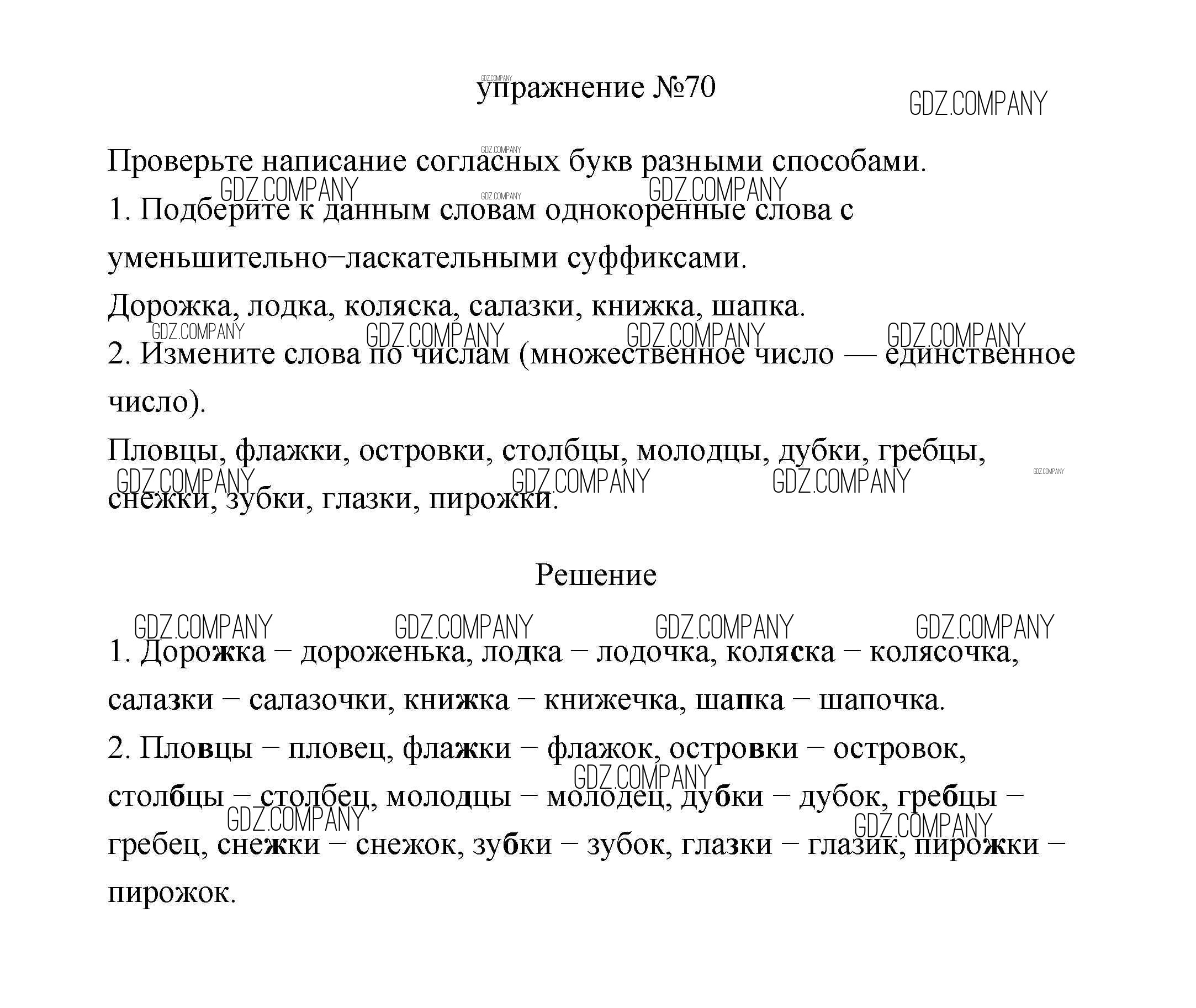 Здесь готовые ответы по Русскому языку за 3 (третий) класс от Климанова, Бабушкина Учебник Перспектива  (издательство: Просвещение от 2019 г.) № 70