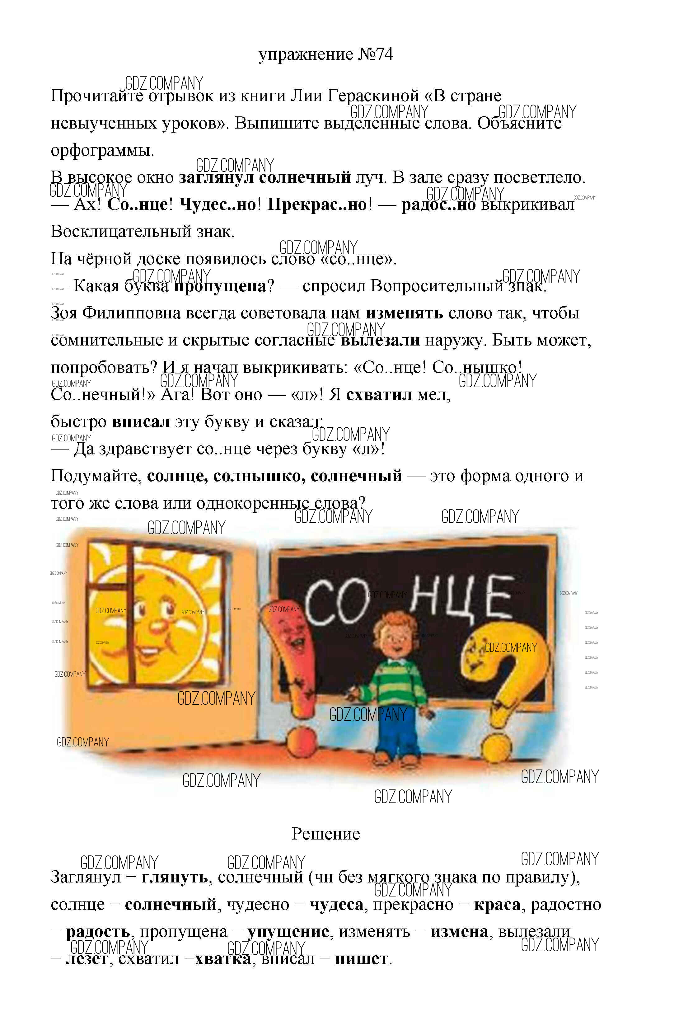 Здесь готовые ответы по Русскому языку за 3 (третий) класс от Климанова, Бабушкина Учебник Перспектива  (издательство: Просвещение от 2019 г.) № 74