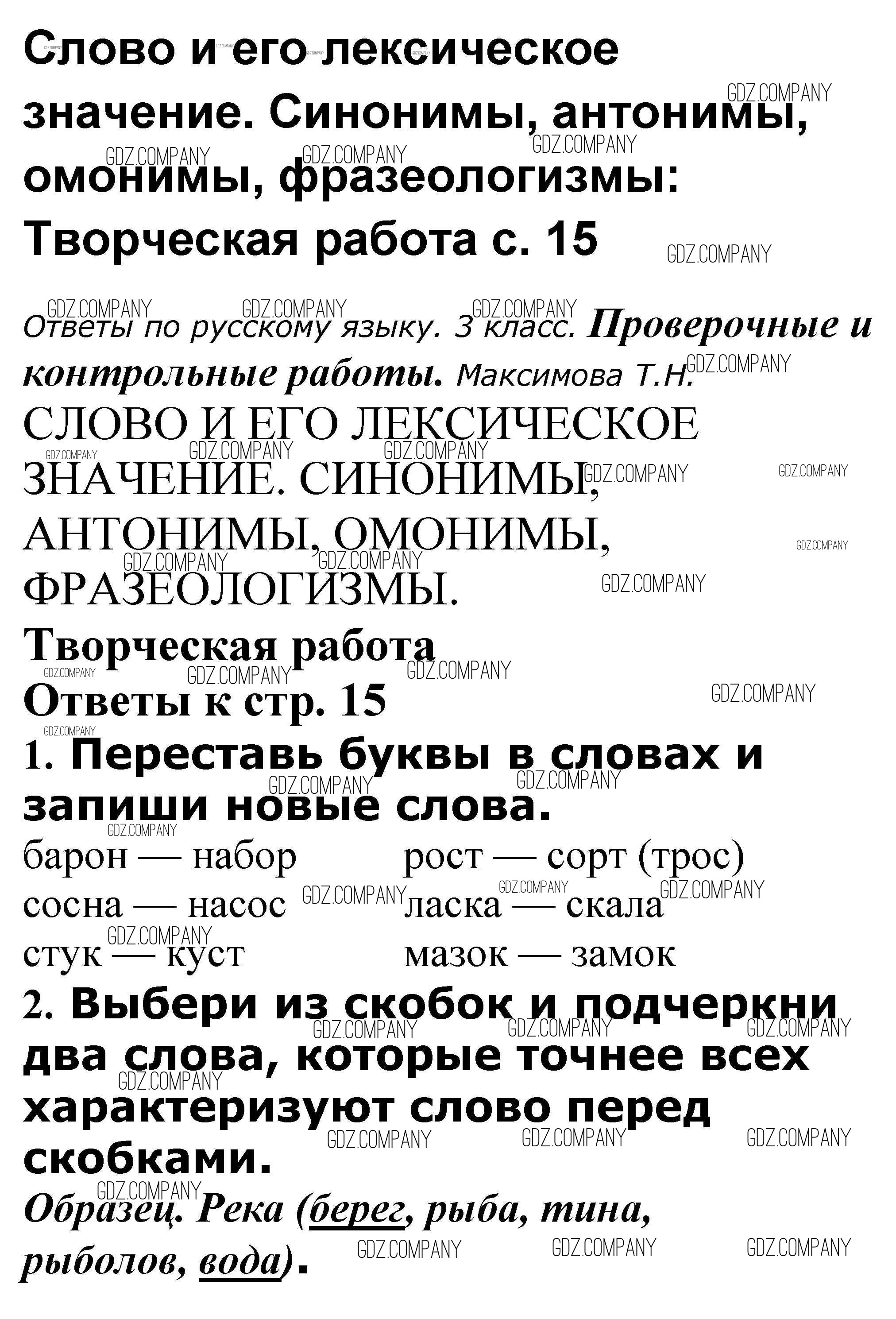 Здесь готовые ответы по Русскому языку за 3 (третий) класс от Максимова Проверочные и контрольные работы (издательство: ВАКО от 2018 г.) № 15