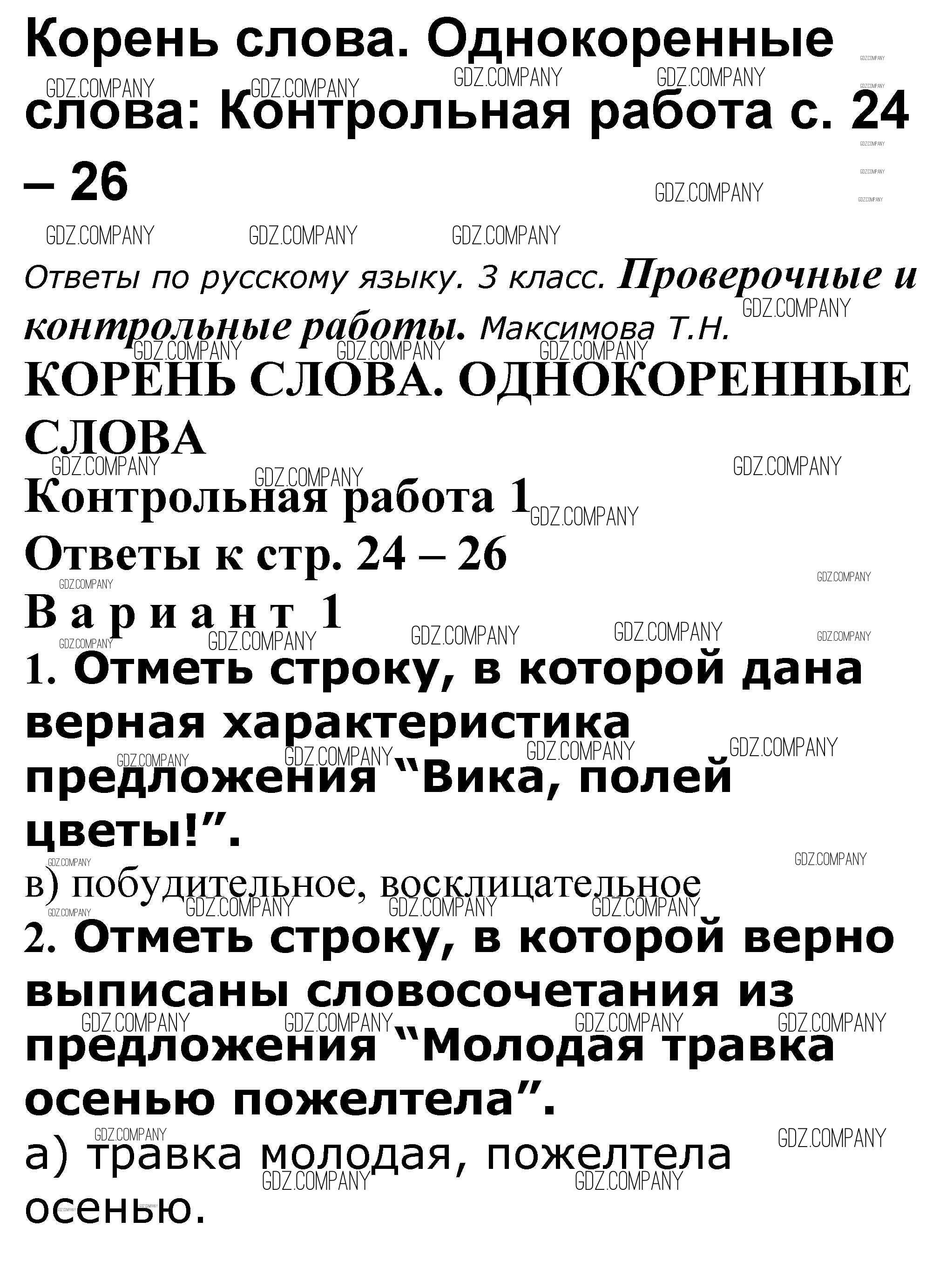 Здесь готовые ответы по Русскому языку за 3 (третий) класс от Максимова Проверочные и контрольные работы (издательство: ВАКО от 2018 г.) № 24-26