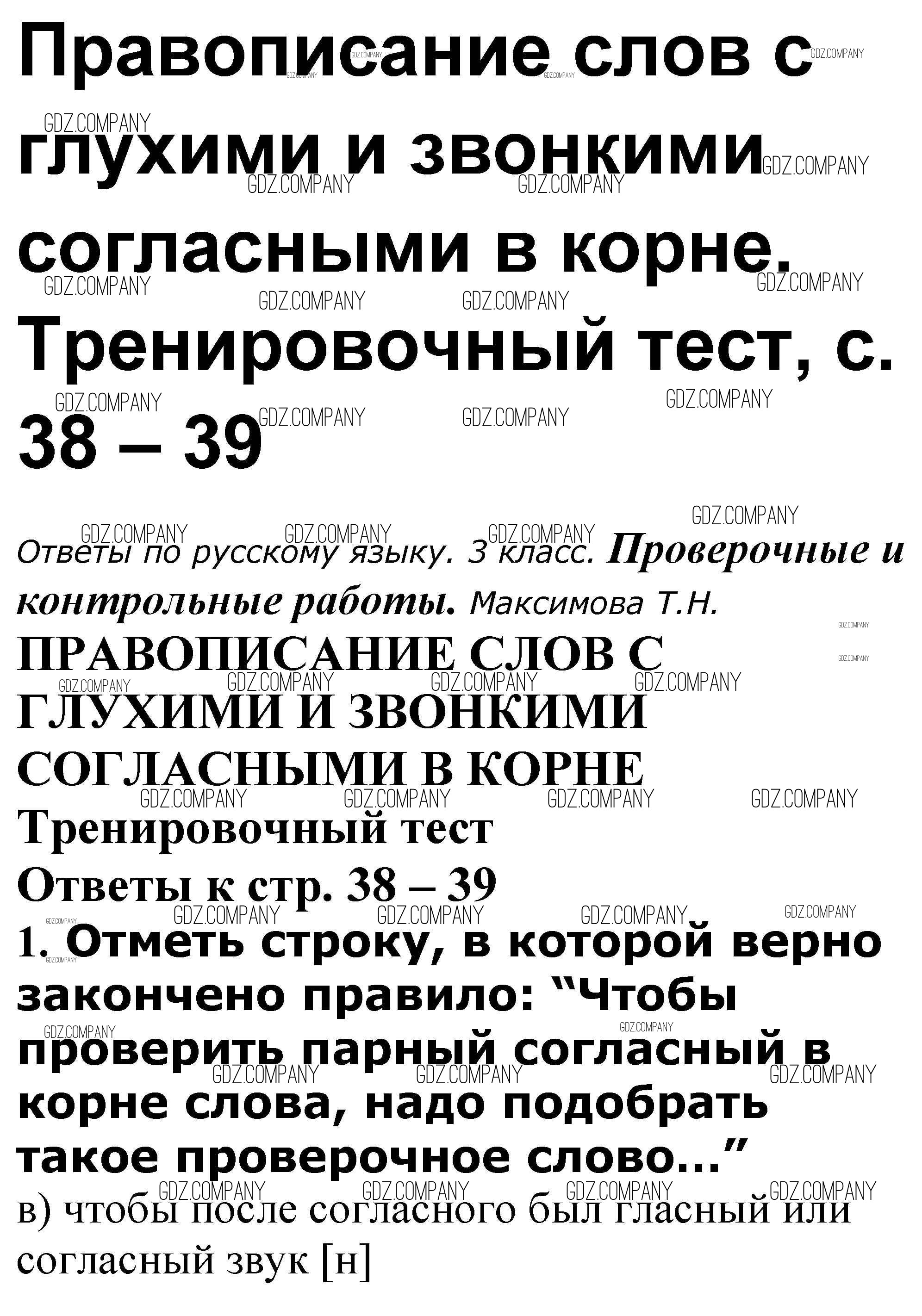Здесь готовые ответы по Русскому языку за 3 (третий) класс от Максимова Проверочные и контрольные работы (издательство: ВАКО от 2018 г.) № 38