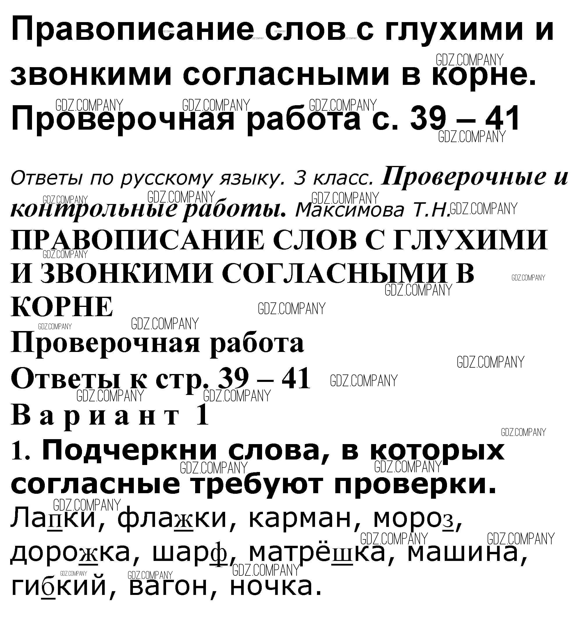 Здесь готовые ответы по Русскому языку за 3 (третий) класс от Максимова Проверочные и контрольные работы (издательство: ВАКО от 2018 г.) № 39-41
