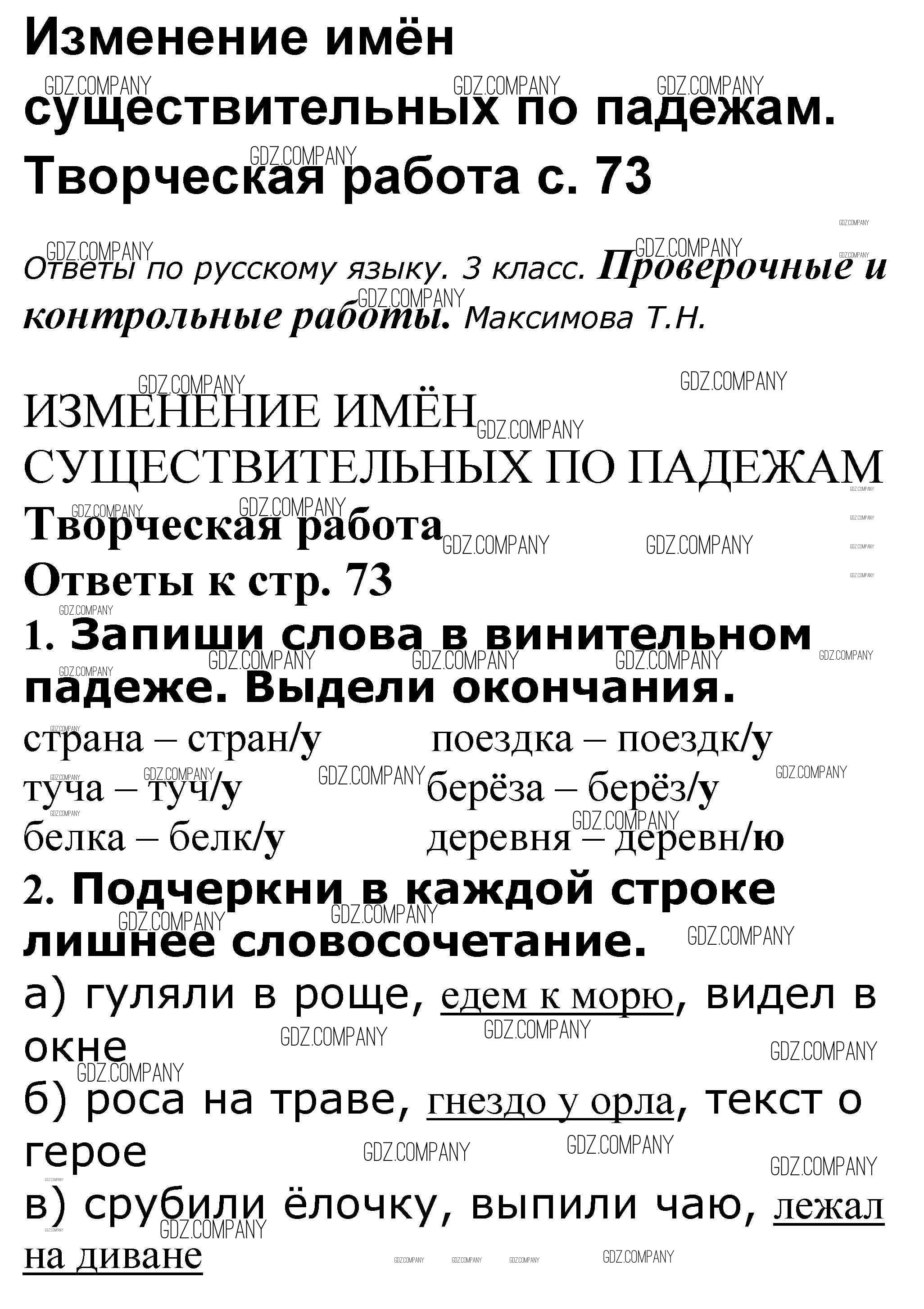 Здесь готовые ответы по Русскому языку за 3 (третий) класс от Максимова Проверочные и контрольные работы (издательство: ВАКО от 2018 г.) № 73