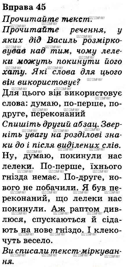 Здесь готовые ответы по Украинскому языку за 3 (третий) класс от Захарийчук, Мовчун Учебник (издательство: Грамота от 2013 г.) № 45