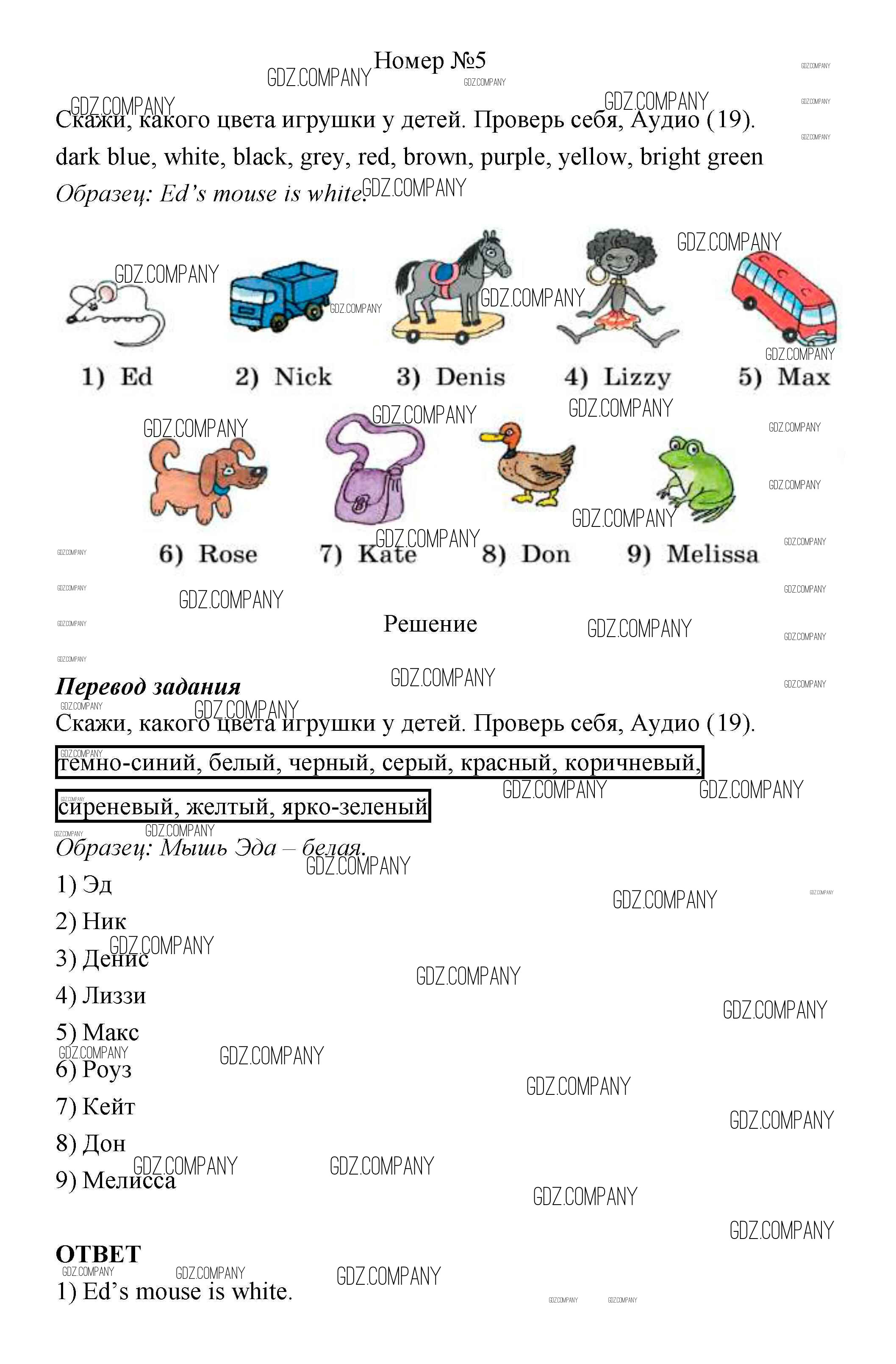Здесь готовые ответы по Английскому языку за 4 (четвертый) класс от Афанасьева, Михеева Учебник Rainbow (издательство: Дрофа от 2016 г.) № 5
