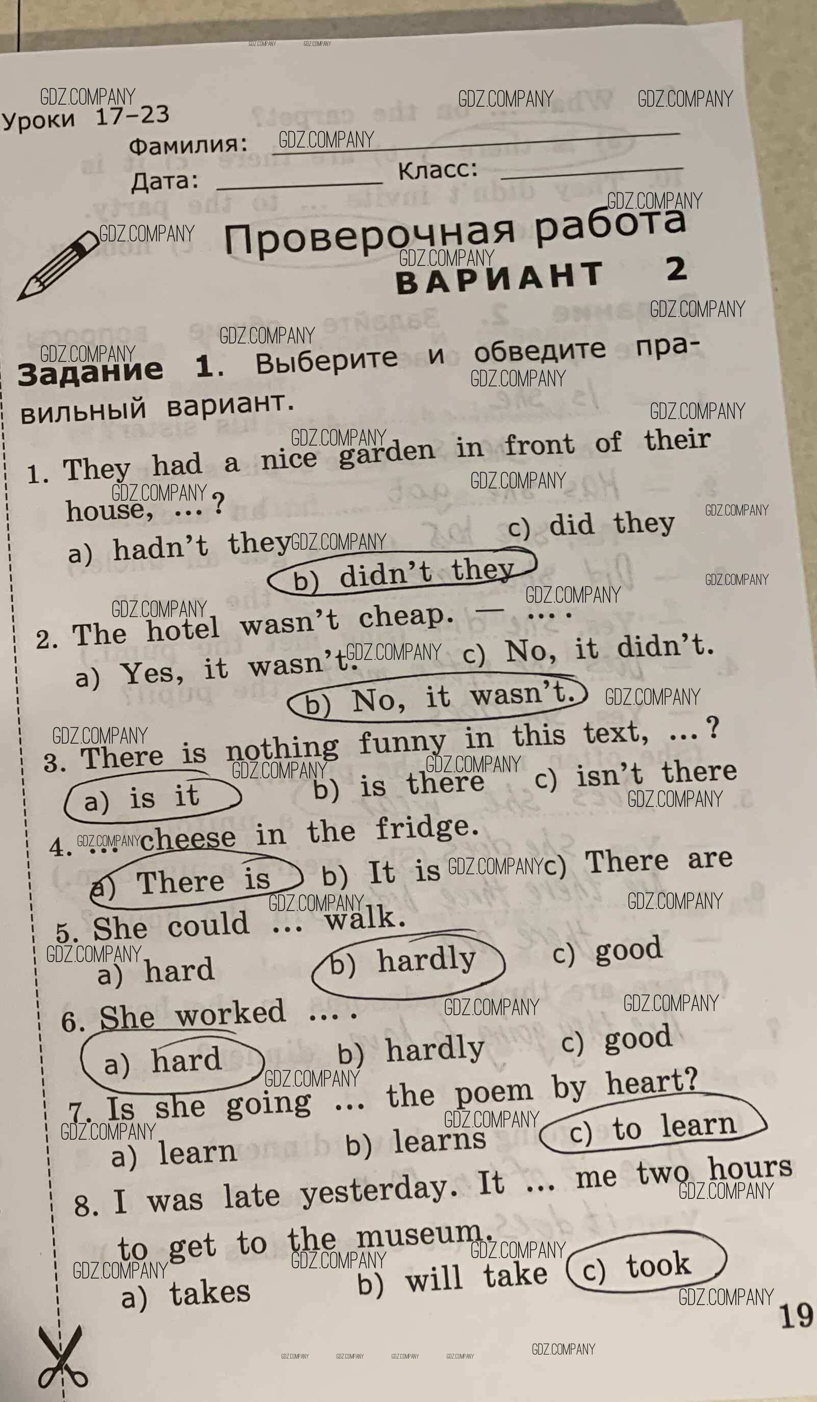 Здесь готовые ответы по Английскому языку за 4 (четвертый) класс от Барашкова Проверочные работы УМК (издательство: Экзамен от 2018 г.) № 19