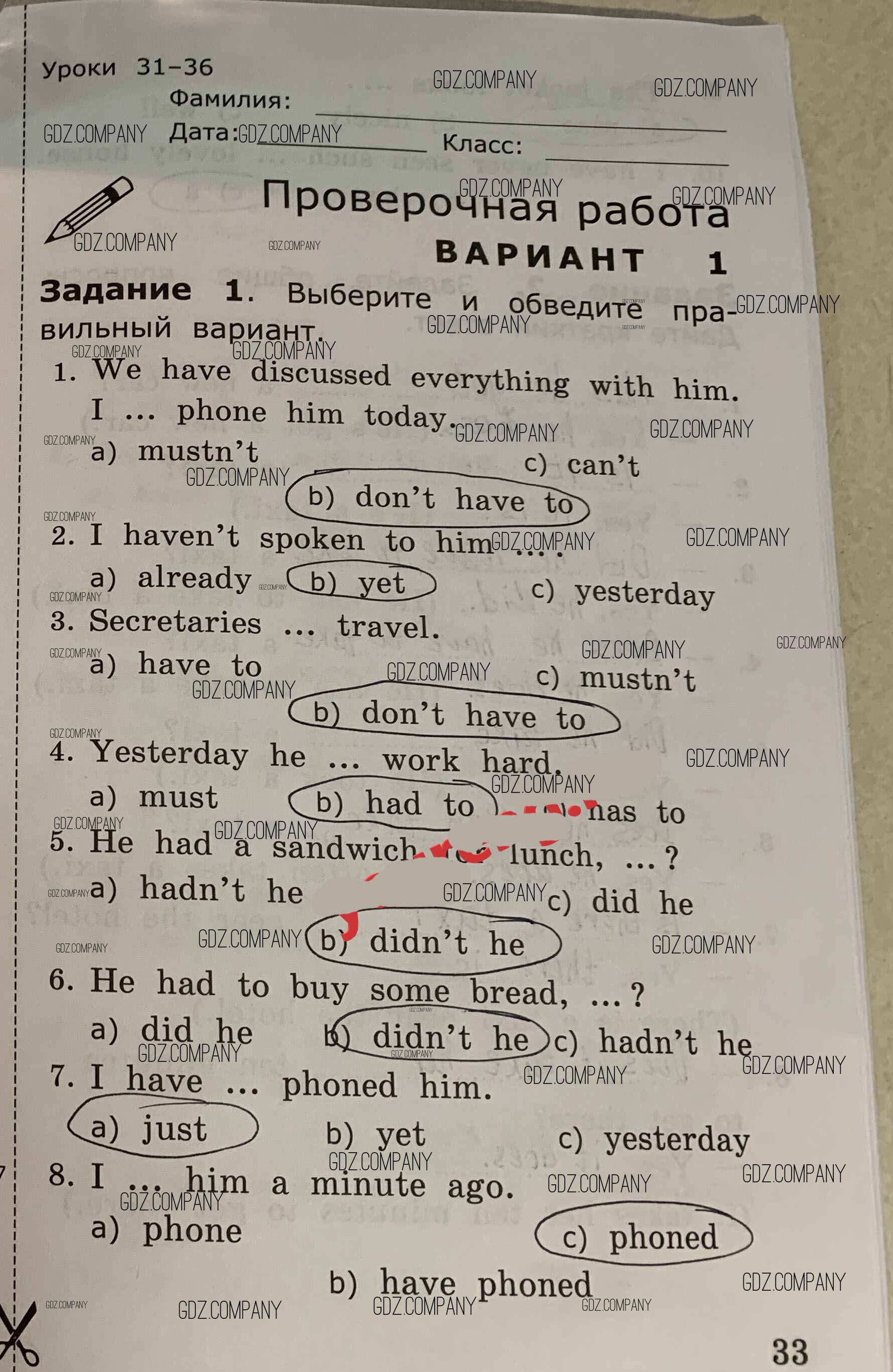Здесь готовые ответы по Английскому языку за 4 (четвертый) класс от Барашкова Проверочные работы УМК (издательство: Экзамен от 2018 г.) № 33