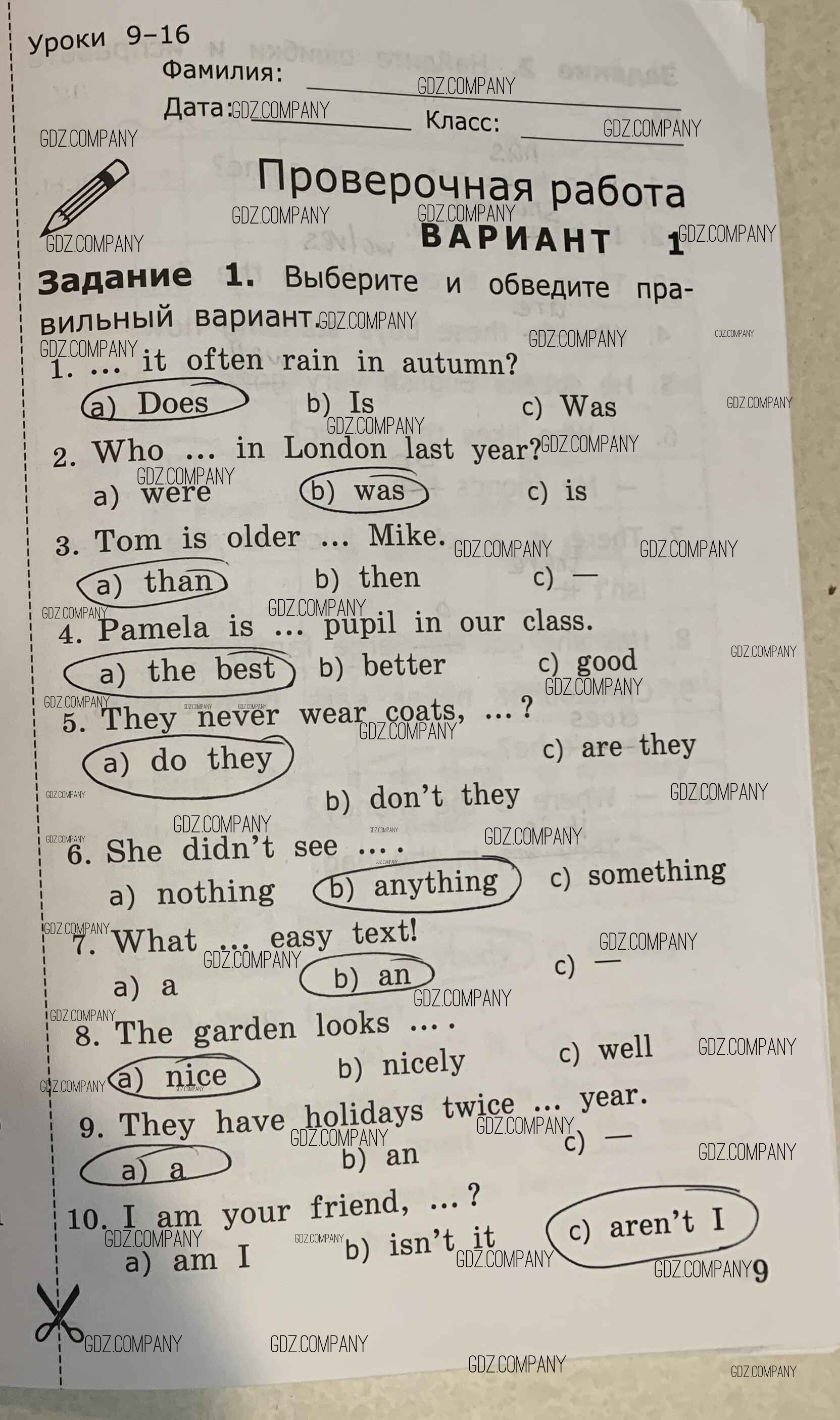 Здесь готовые ответы по Английскому языку за 4 (четвертый) класс от Барашкова Проверочные работы УМК (издательство: Экзамен от 2018 г.) № 9