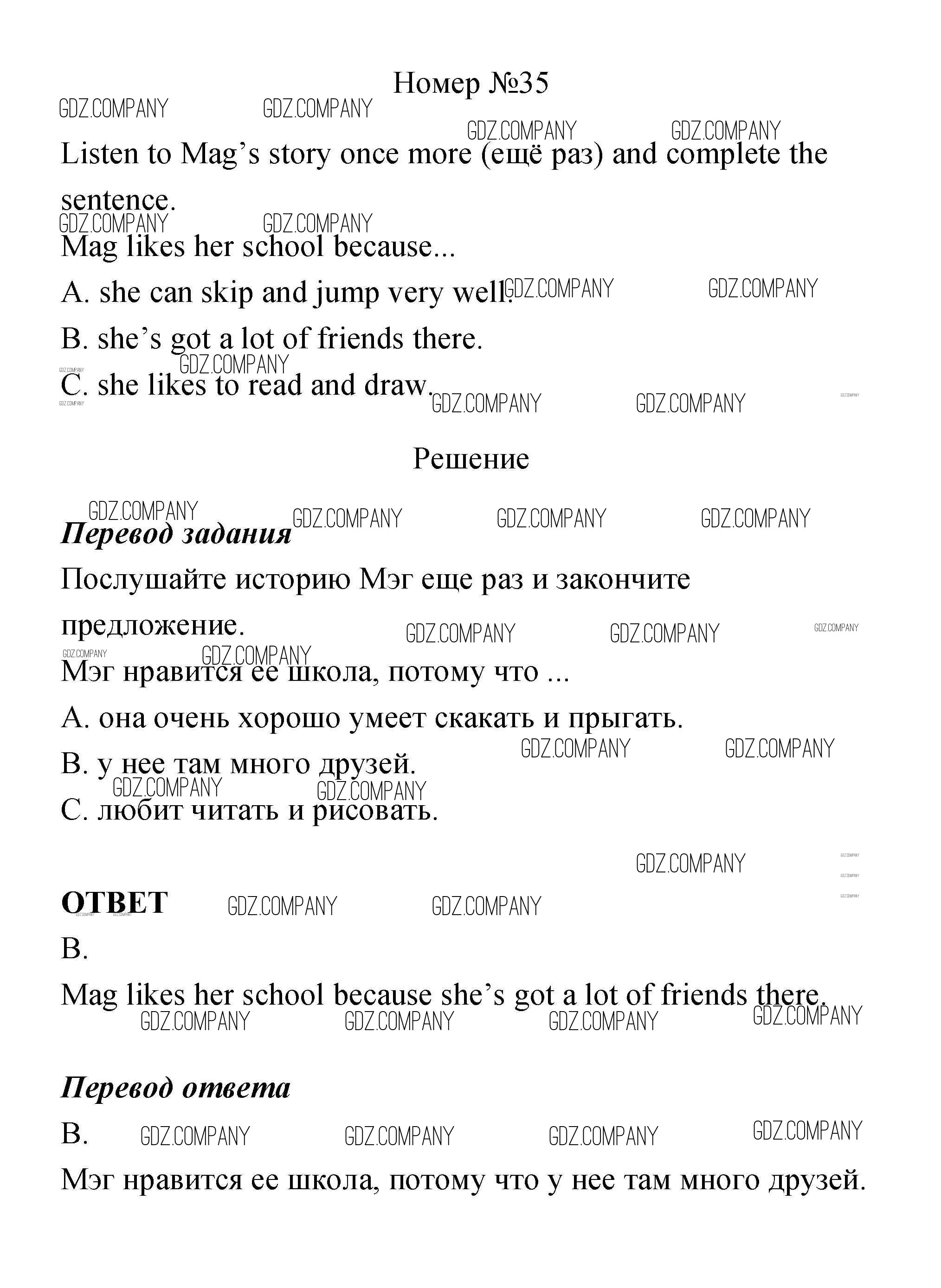 Здесь готовые ответы по Английскому языку за 4 (четвертый) класс от Биболетова, Денисенко, Трубанева Учебник Enjoy English (издательство: Дрофа от 2016 г.) № 35
