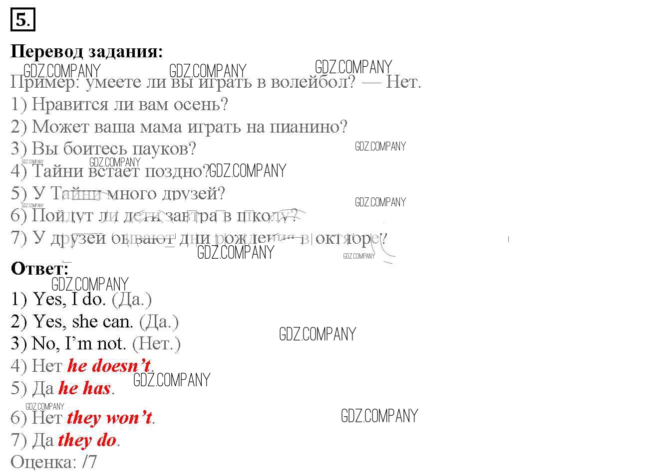 Здесь готовые ответы по Английскому языку за 4 (четвертый) класс от Биболетова, Денисенко, Трубанева Рабочая тетрадь с контрольными работами Enjoy English (издательство: Аст/Астрель от 2016 г.) № 5