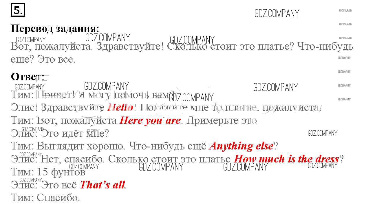 Здесь готовые ответы по Английскому языку за 4 (четвертый) класс от Биболетова, Денисенко, Трубанева Рабочая тетрадь с контрольными работами Enjoy English (издательство: Аст/Астрель от 2016 г.) № 5