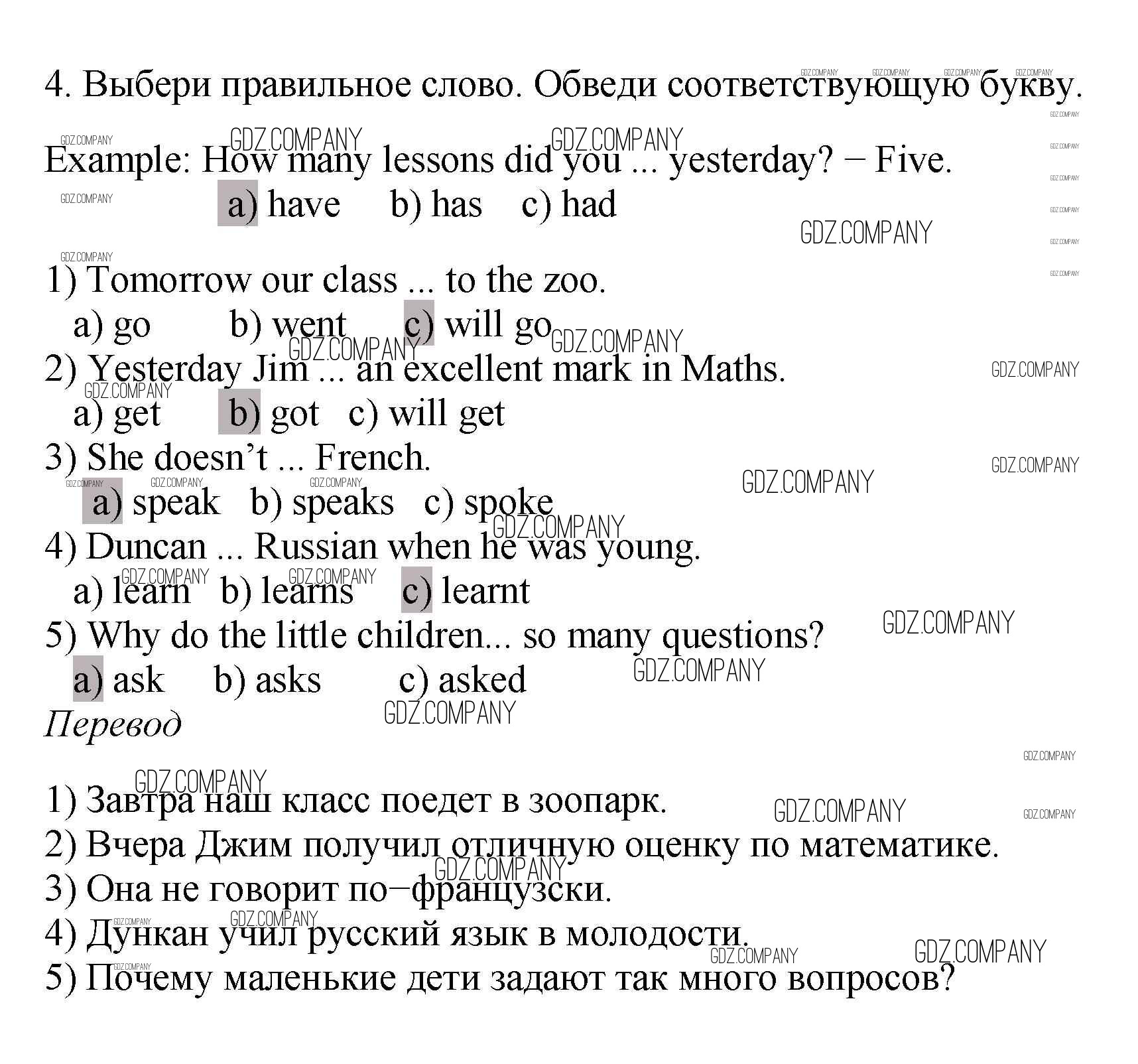 Здесь готовые ответы по Английскому языку за 4 (четвертый) класс от Биболетова, Денисенко, Трубанева Рабочая тетрадь с контрольными работами Enjoy English (издательство: Аст/Астрель от 2016 г.) № 4