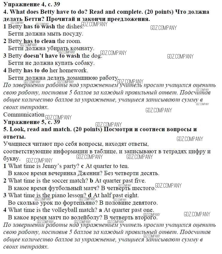 Здесь готовые ответы по Английскому языку за 4 (четвертый) класс от Быкова, Дули, Поспелова, Эванс Учебник Spotlight (издательство: Просвещение от 2015 г.) № страница 39