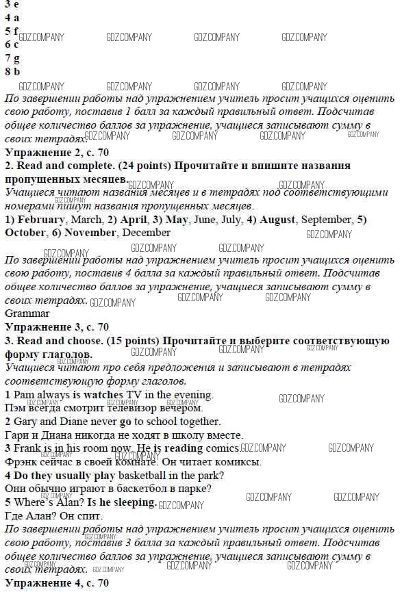 Здесь готовые ответы по Английскому языку за 4 (четвертый) класс от Быкова, Дули, Поспелова, Эванс Учебник Spotlight (издательство: Просвещение от 2015 г.) № страница 70