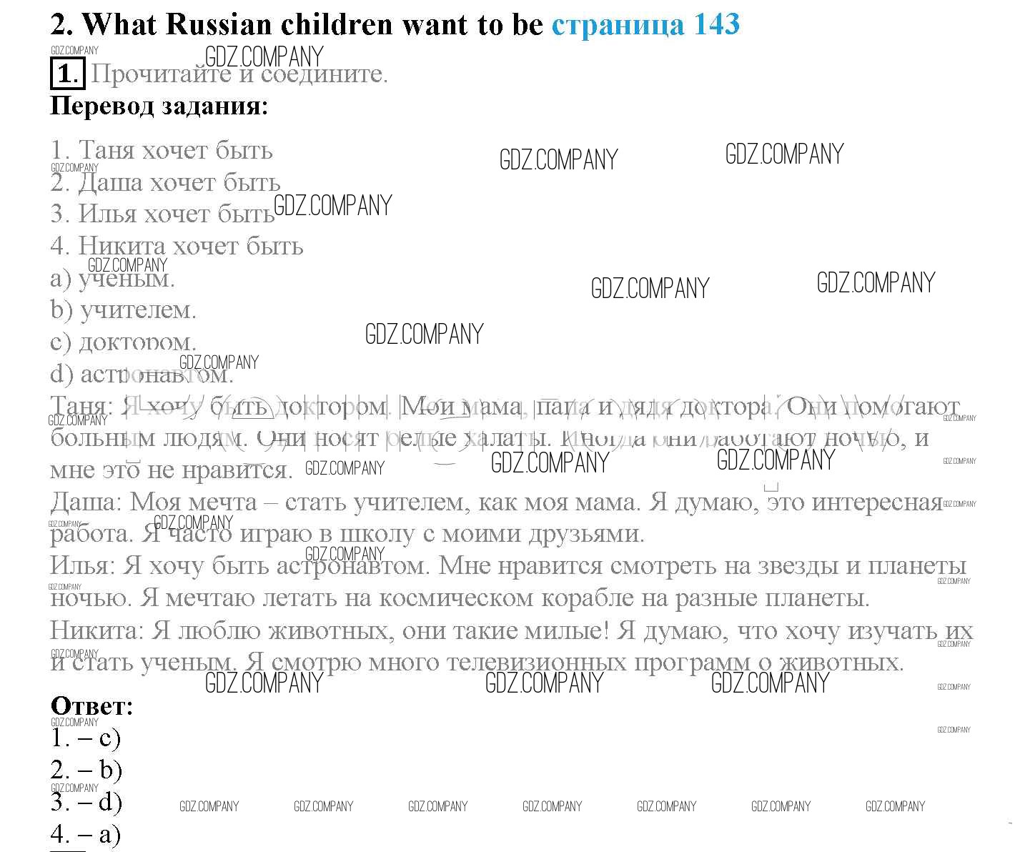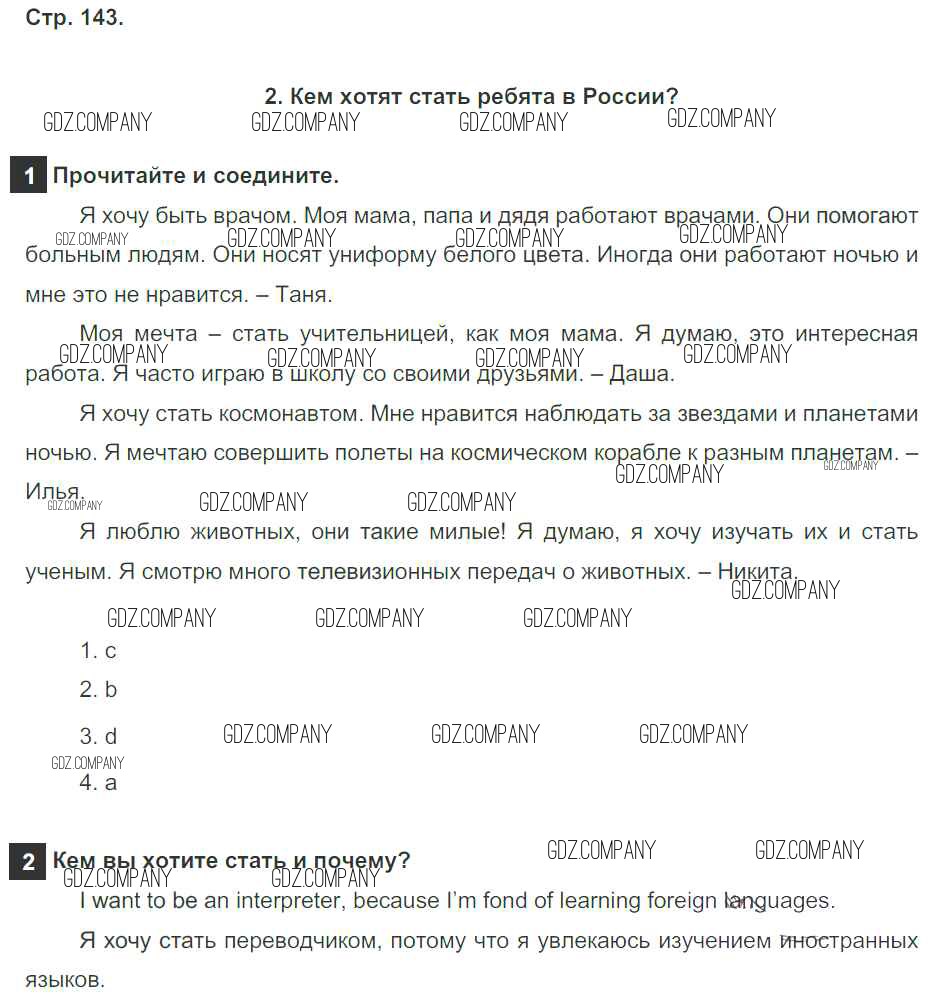 Здесь готовые ответы по Английскому языку за 4 (четвертый) класс от Быкова, Дули, Поспелова, Эванс Учебник Spotlight (издательство: Просвещение от 2015 г.) № страница 143
