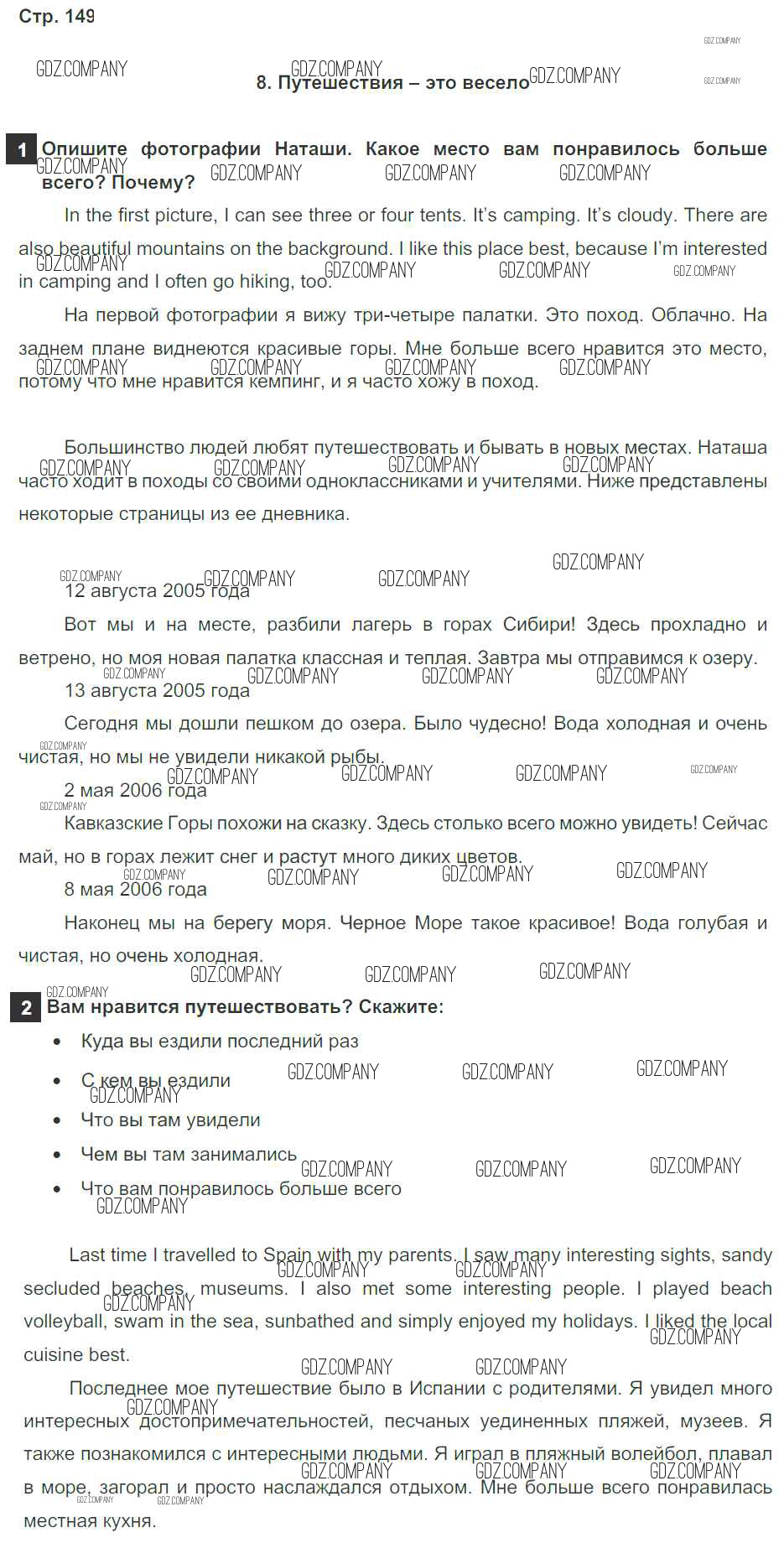 Здесь готовые ответы по Английскому языку за 4 (четвертый) класс от Быкова, Дули, Поспелова, Эванс Учебник Spotlight (издательство: Просвещение от 2015 г.) № страница 149