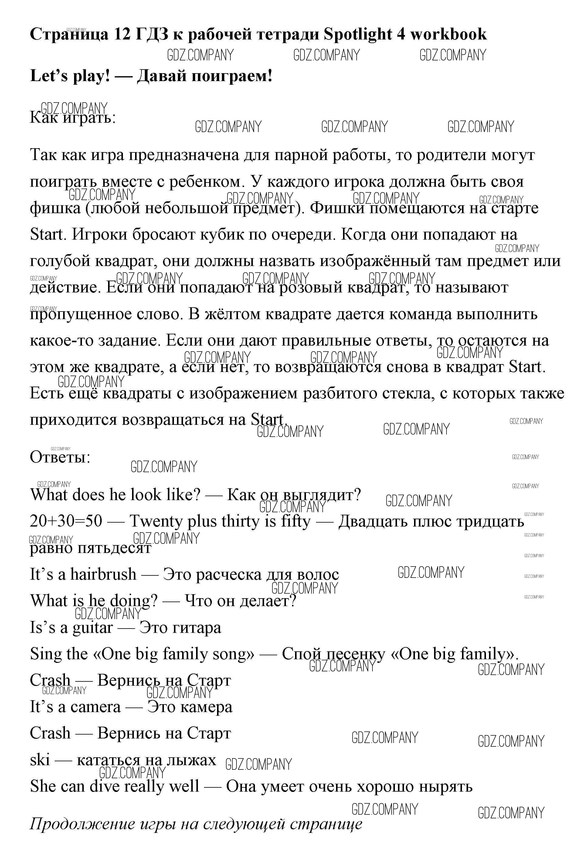 Здесь готовые ответы по Английскому языку за 4 (четвертый) класс от Быкова, Эванс, Дули, Поспелова Рабочая тетрадь Spotlight (издательство: Просвещение от 2017 г.) № страница 12