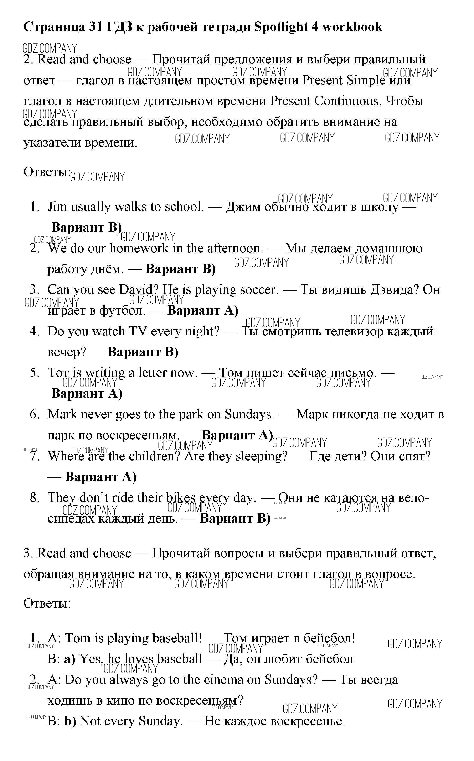 Здесь готовые ответы по Английскому языку за 4 (четвертый) класс от Быкова, Эванс, Дули, Поспелова Рабочая тетрадь Spotlight (издательство: Просвещение от 2017 г.) № страница 31