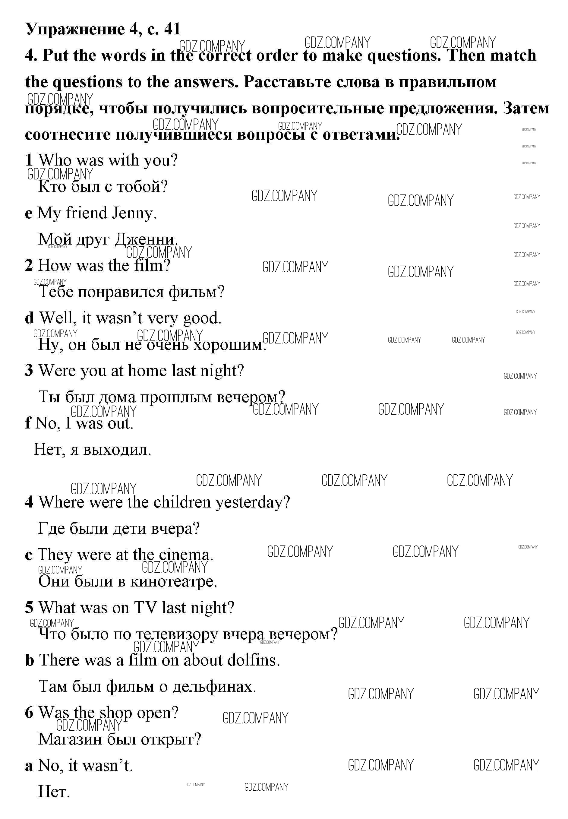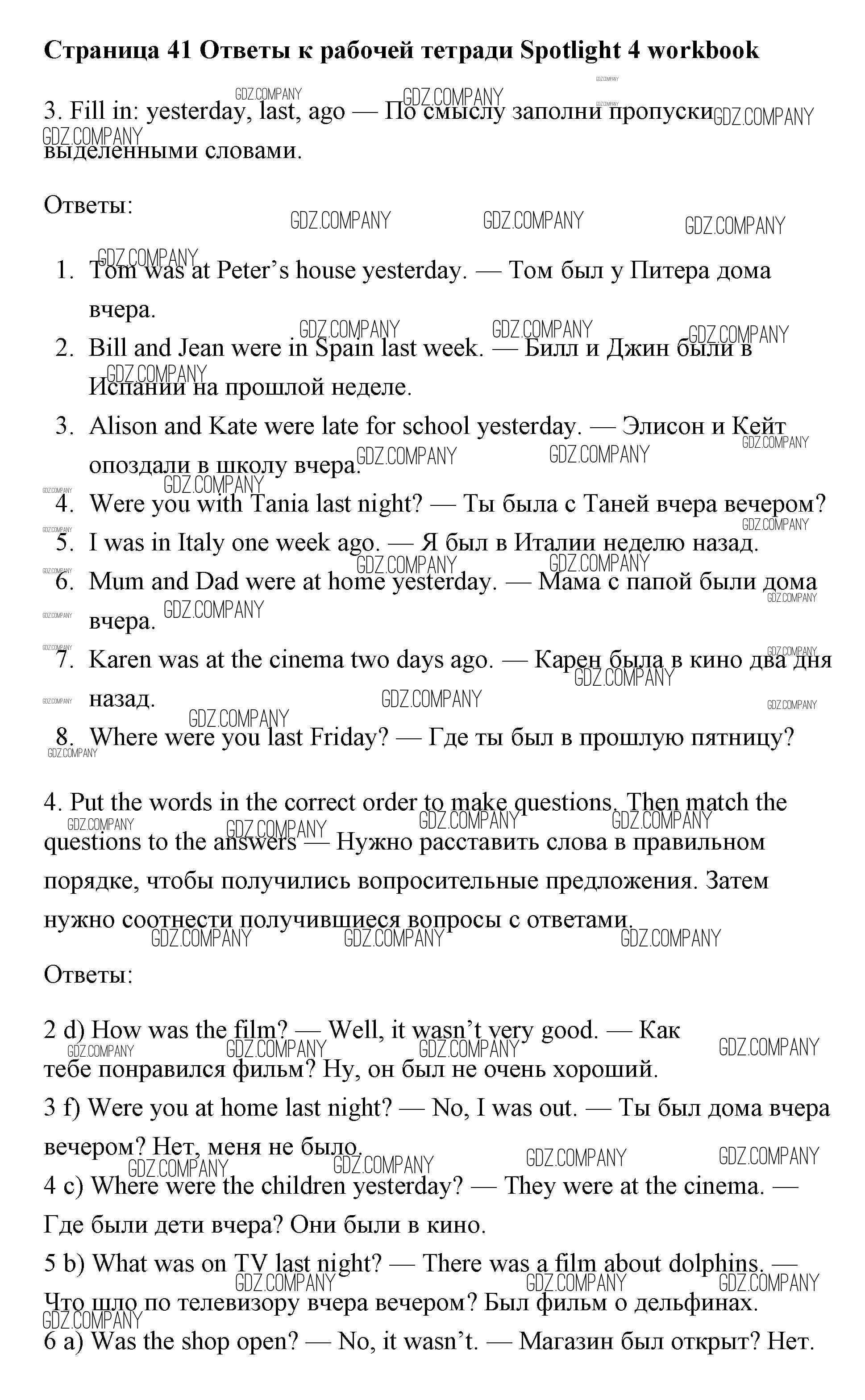 Здесь готовые ответы по Английскому языку за 4 (четвертый) класс от Быкова, Эванс, Дули, Поспелова Рабочая тетрадь Spotlight (издательство: Просвещение от 2017 г.) № страница 41
