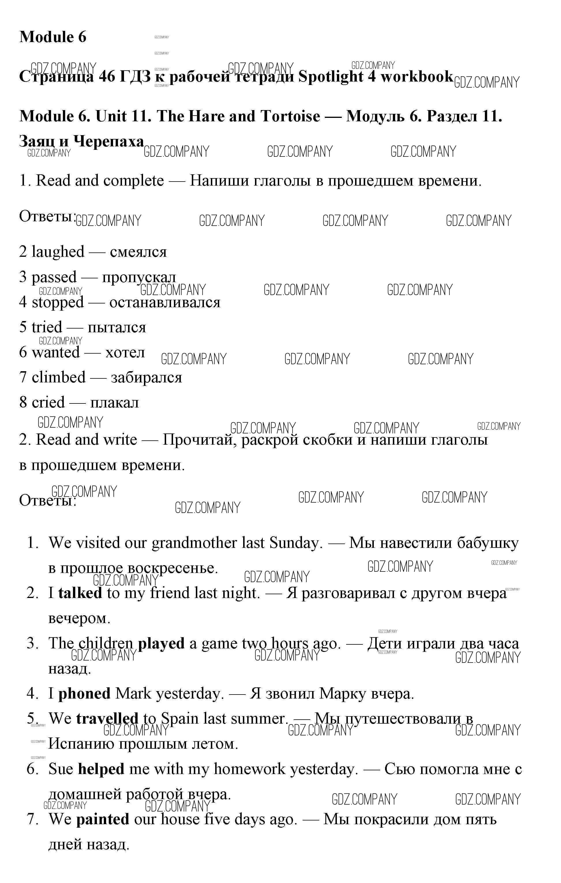 Здесь готовые ответы по Английскому языку за 4 (четвертый) класс от Быкова, Эванс, Дули, Поспелова Рабочая тетрадь Spotlight (издательство: Просвещение от 2017 г.) № страница 46