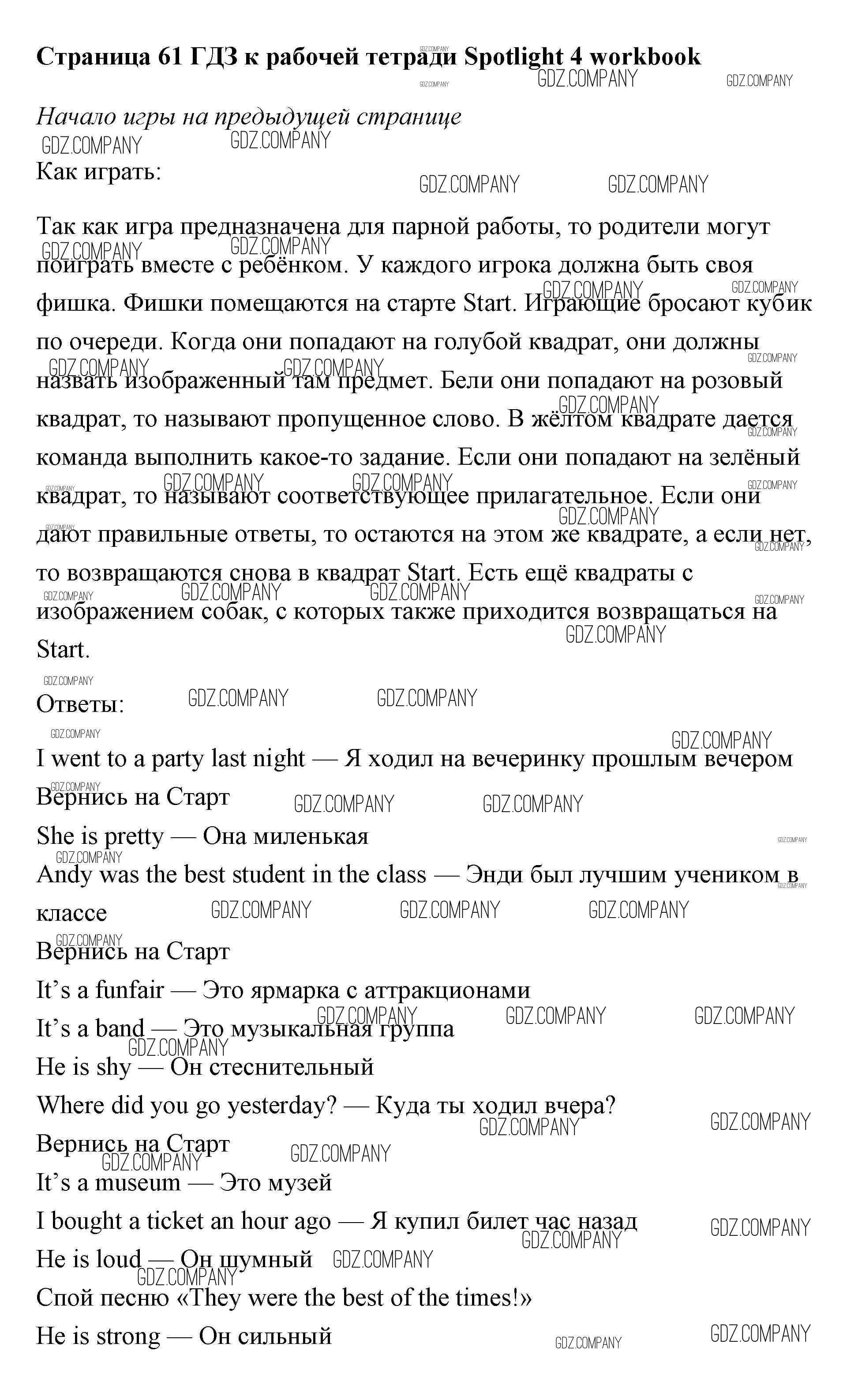 Здесь готовые ответы по Английскому языку за 4 (четвертый) класс от Быкова, Эванс, Дули, Поспелова Рабочая тетрадь Spotlight (издательство: Просвещение от 2017 г.) № страница 61