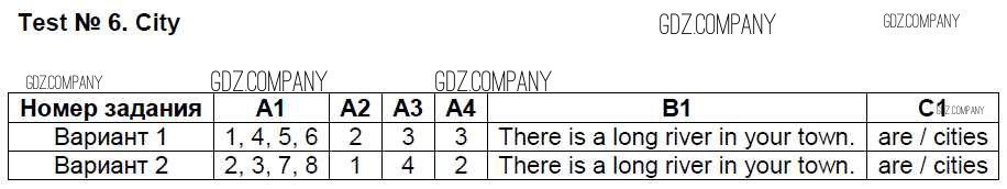Здесь готовые ответы по Английскому языку за 4 (четвертый) класс от Кулинич Контрольно-измерительные материалы (КИМ) (издательство: ВАКО от 2018 г.) № Тест №6. City