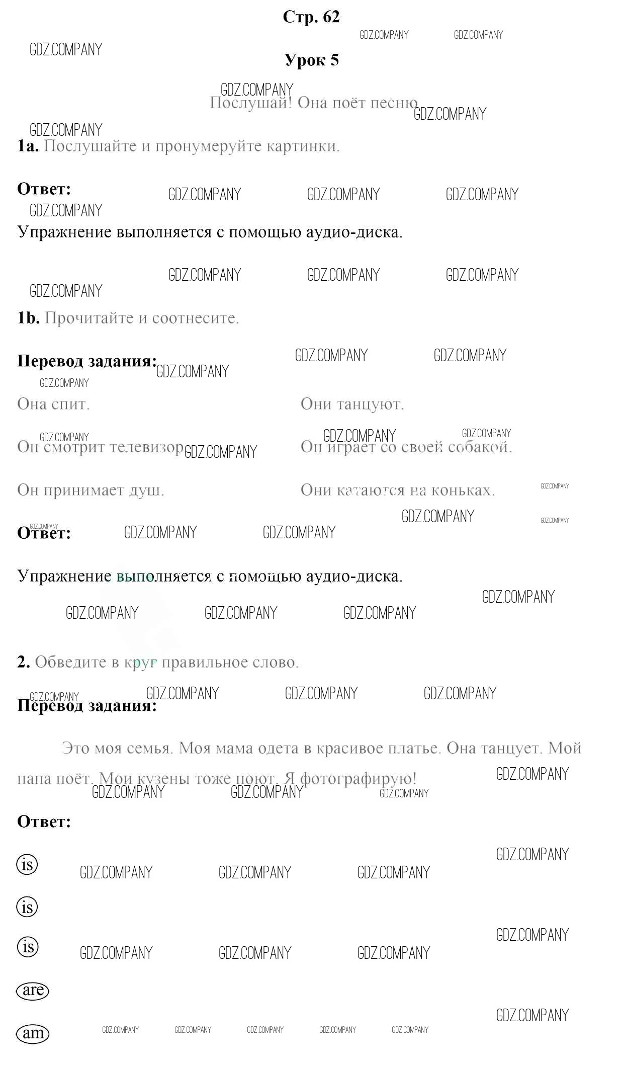 Здесь готовые ответы по Английскому языку за 4 (четвертый) класс от Лапицкая, Калишевич, Севрюкова, Седунова Рабочая тетрадь (издательство: Аверсэв от 2019 г.) № 62