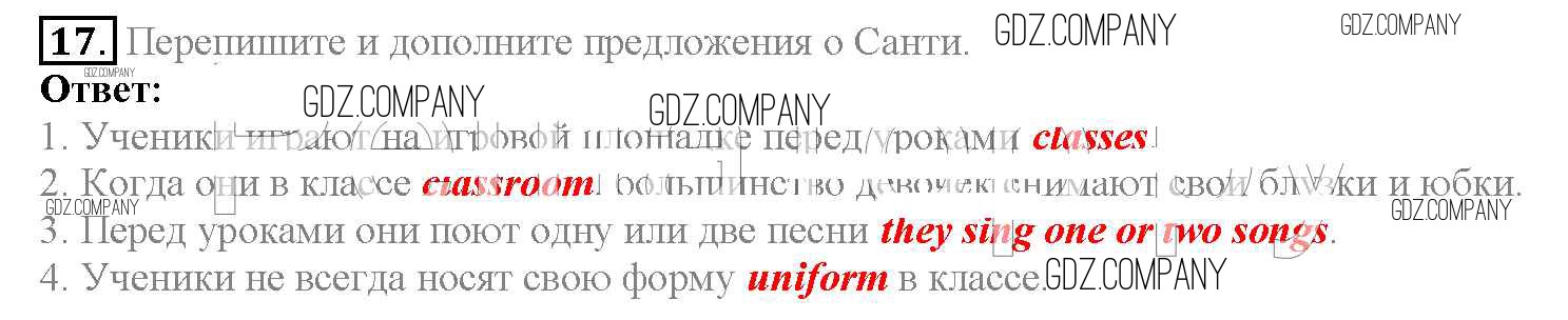 Здесь готовые ответы по Английскому языку за 4 (четвертый) класс от Верещагина, Афанасьева Учебник Углубленный уровень (издательство: Просвещение от 2015 г.) № 17 Углубленный уровень