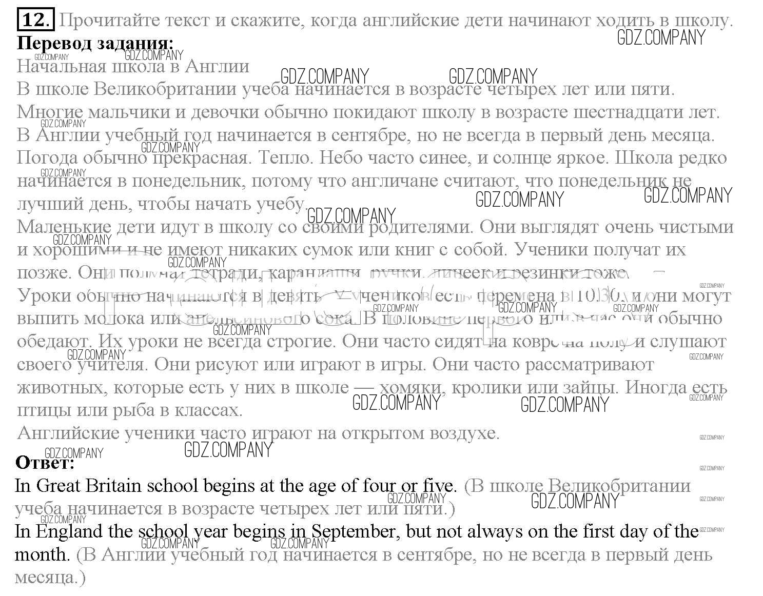 Здесь готовые ответы по Английскому языку за 4 (четвертый) класс от Верещагина, Афанасьева Учебник Углубленный уровень (издательство: Просвещение от 2015 г.) № 12 Углубленный уровень