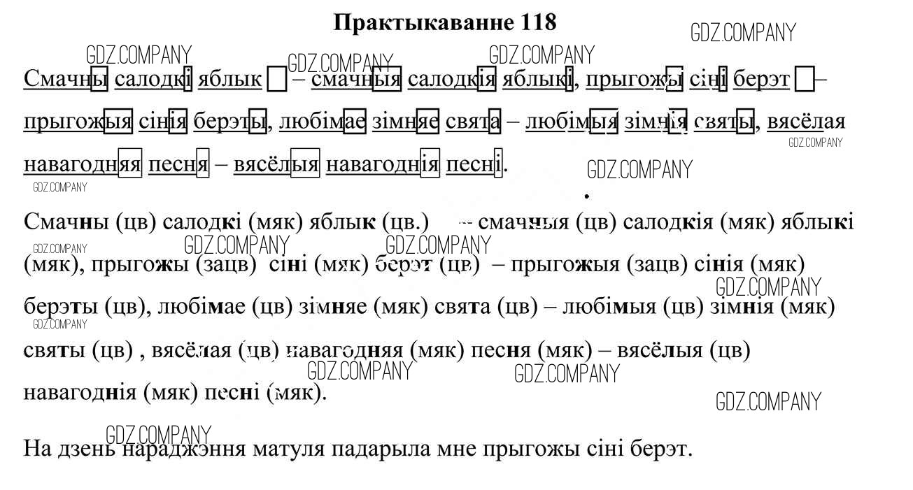 Здесь готовые ответы по Белорусскому языку за 4 (четвертый) класс от Свірыдзенка Учебник (издательство: Национальный институт образования от 2018 г.) № 118