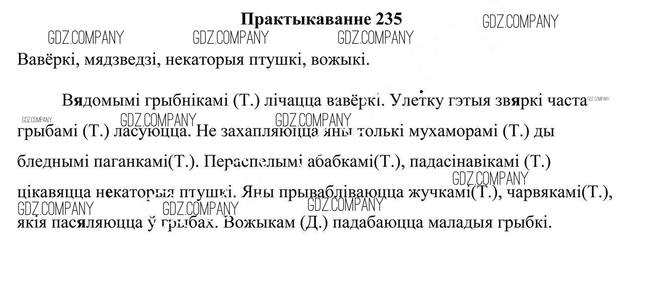 Здесь готовые ответы по Белорусскому языку за 4 (четвертый) класс от Свірыдзенка Учебник (издательство: Национальный институт образования от 2018 г.) № 235