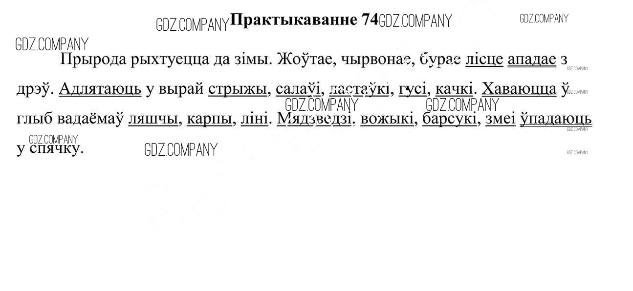 Здесь готовые ответы по Белорусскому языку за 4 (четвертый) класс от Свірыдзенка Учебник (издательство: Национальный институт образования от 2018 г.) № 74