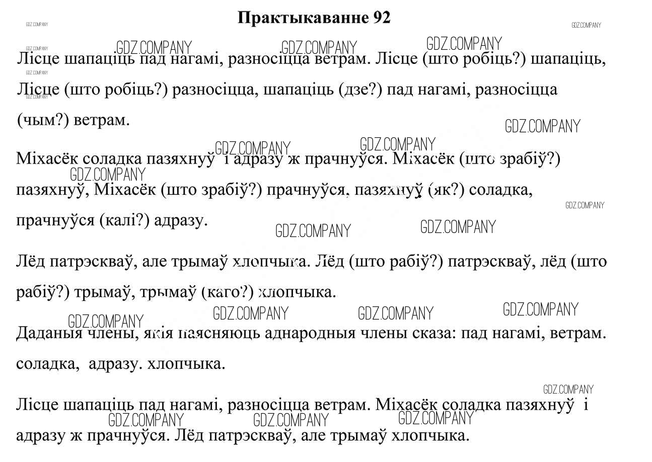 Здесь готовые ответы по Белорусскому языку за 4 (четвертый) класс от Свірыдзенка Учебник (издательство: Национальный институт образования от 2018 г.) № 92