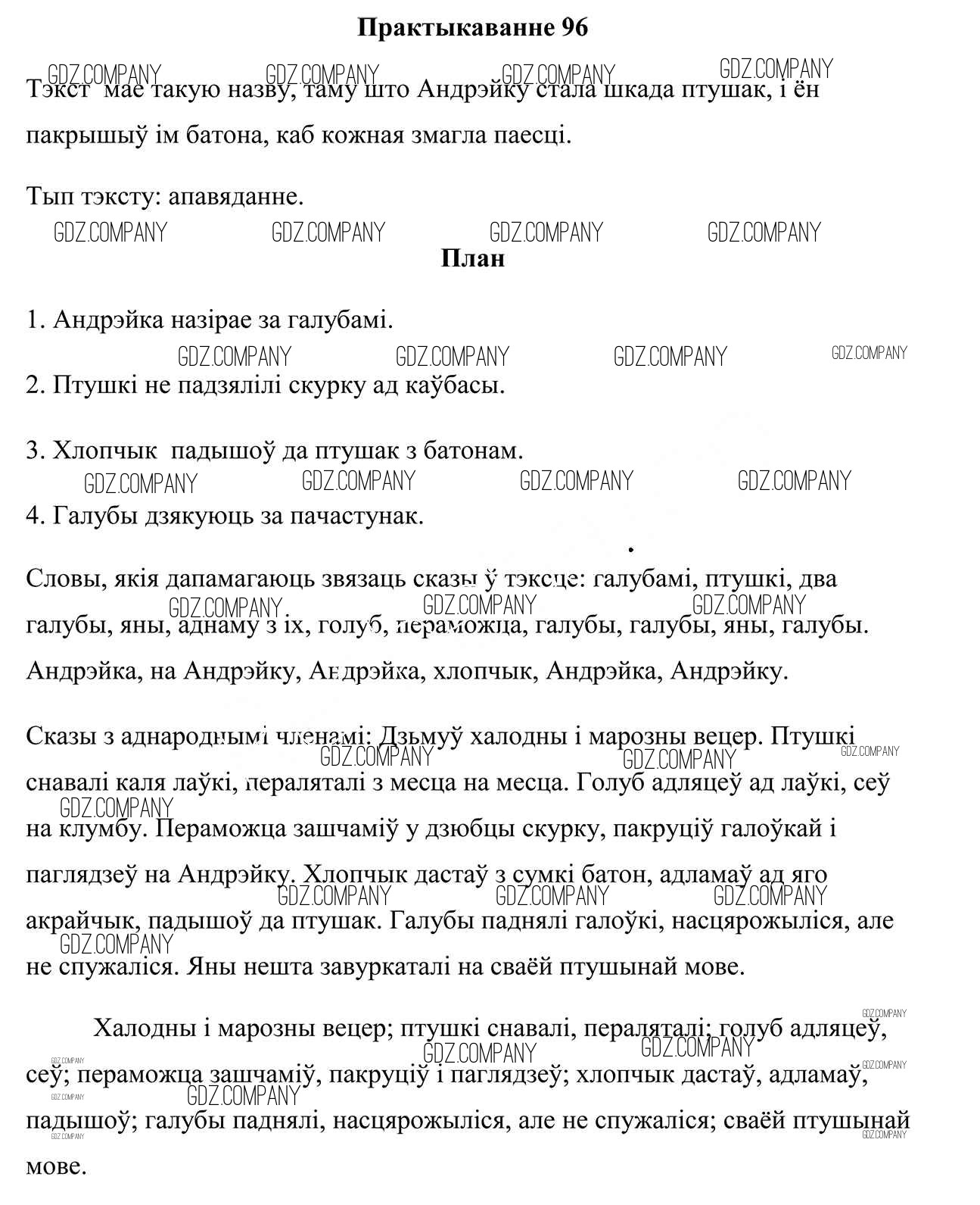 Здесь готовые ответы по Белорусскому языку за 4 (четвертый) класс от Свірыдзенка Учебник (издательство: Национальный институт образования от 2018 г.) № 96