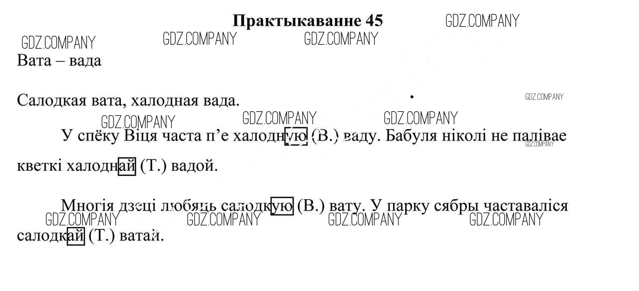 Здесь готовые ответы по Белорусскому языку за 4 (четвертый) класс от Свірыдзенка Учебник (издательство: Национальный институт образования от 2018 г.) № 45