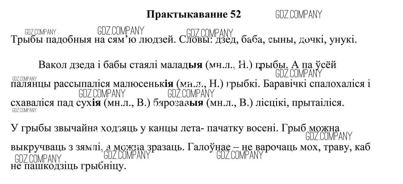Здесь готовые ответы по Белорусскому языку за 4 (четвертый) класс от Свірыдзенка Учебник (издательство: Национальный институт образования от 2018 г.) № 52