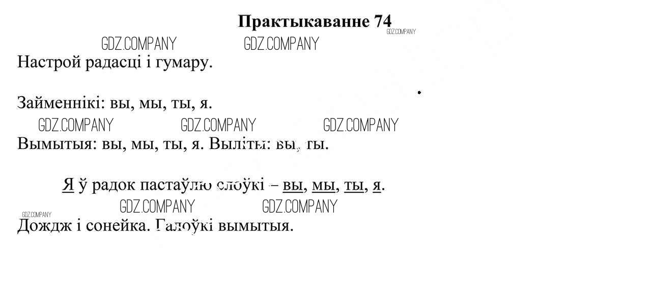 Здесь готовые ответы по Белорусскому языку за 4 (четвертый) класс от Свірыдзенка Учебник (издательство: Национальный институт образования от 2018 г.) № 74