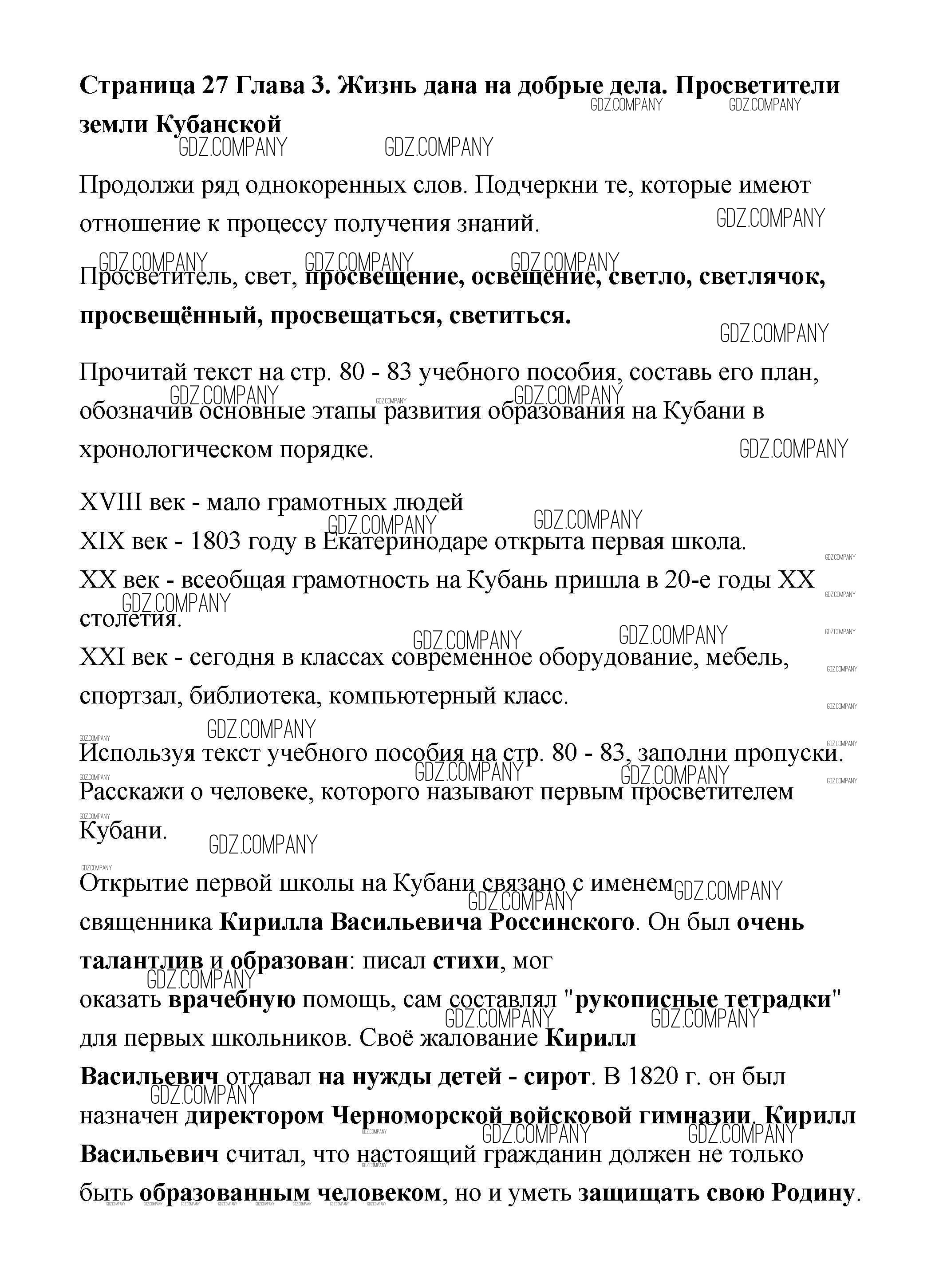 Здесь готовые ответы по Кубановедению за 4 (четвертый) класс от Науменко Рабочая тетрадь (издательство: Перспективы образования от 2020 г.) № 27
