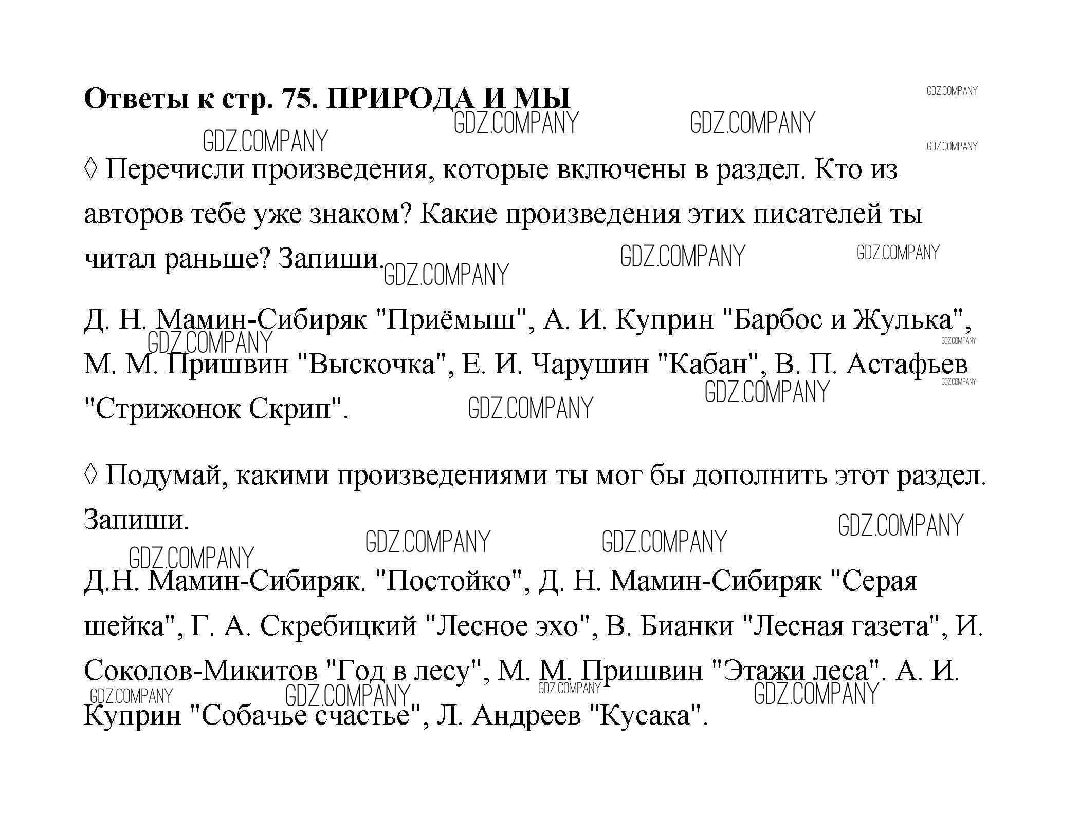 Здесь готовые ответы по Литературе за 4 (четвертый) класс от Бойкина, Виноградская Рабочая тетрадь Школа России (издательство: Просвещение от 2016 г.) № 75