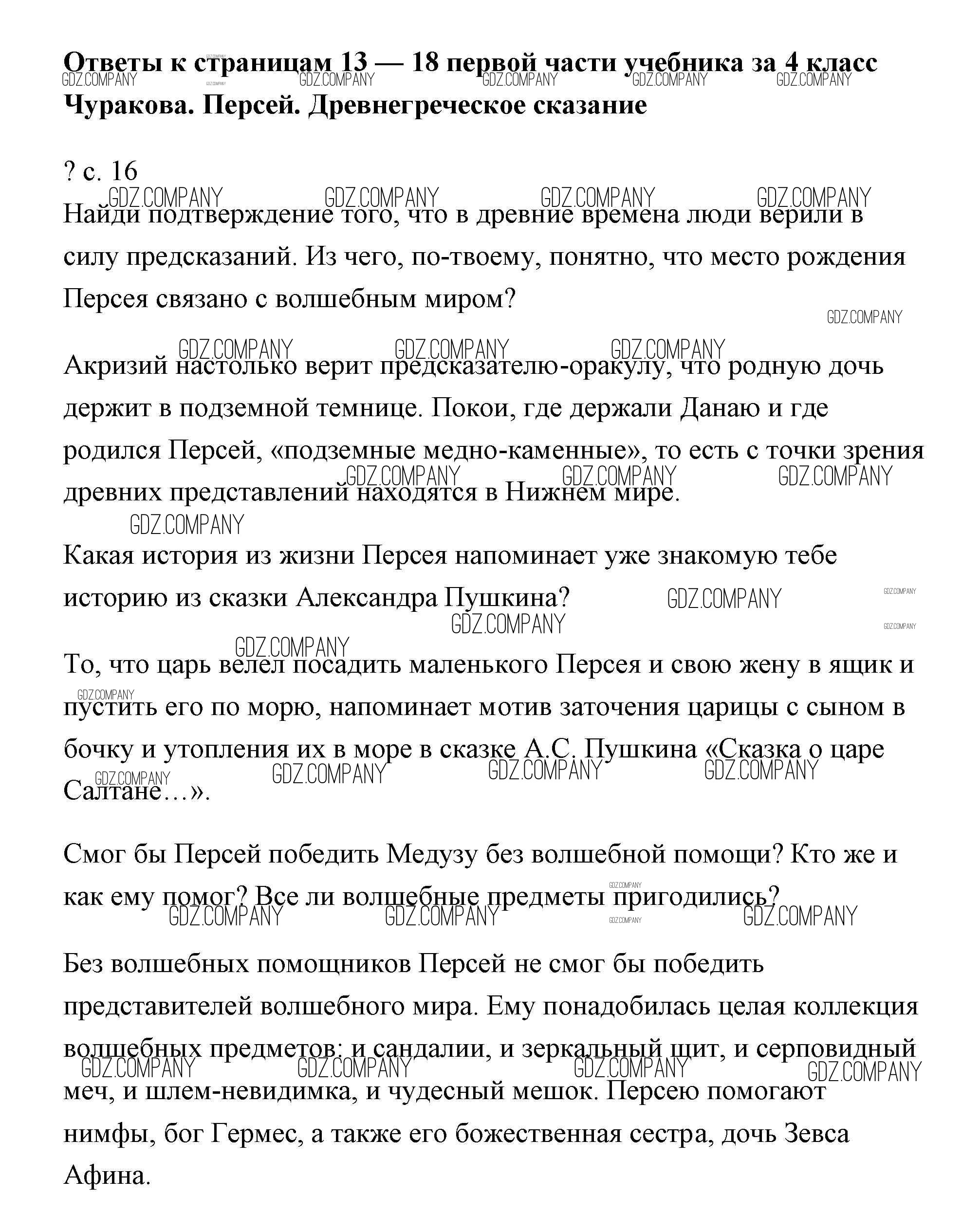 Здесь готовые ответы по Литературе за 4 (четвертый) класс от Чуракова Учебник Перспективная начальная школа (издательство: Академкнига от 2017 г.) № 16