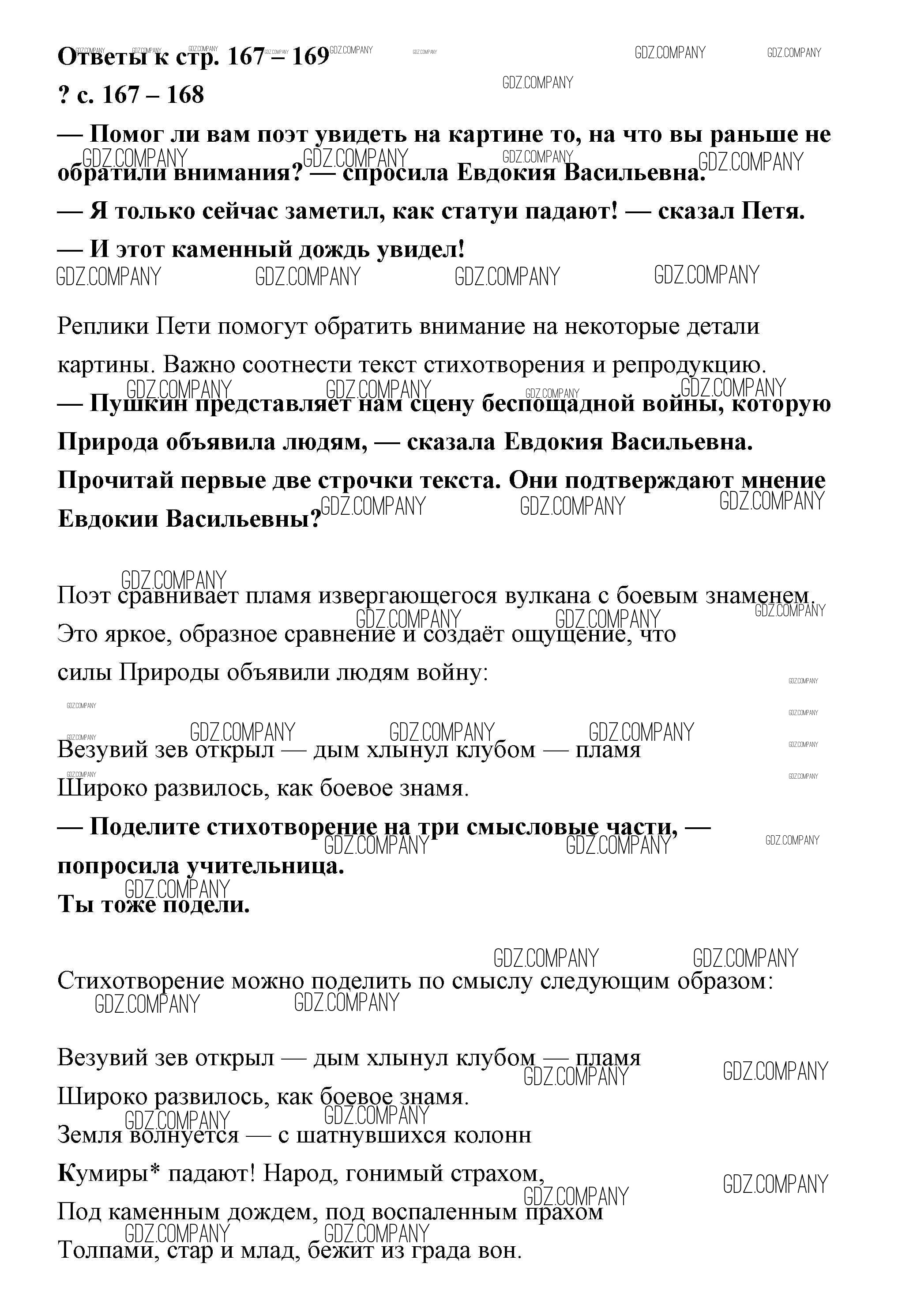 Здесь готовые ответы по Литературе за 4 (четвертый) класс от Чуракова Учебник Перспективная начальная школа (издательство: Академкнига от 2017 г.) № 167-168