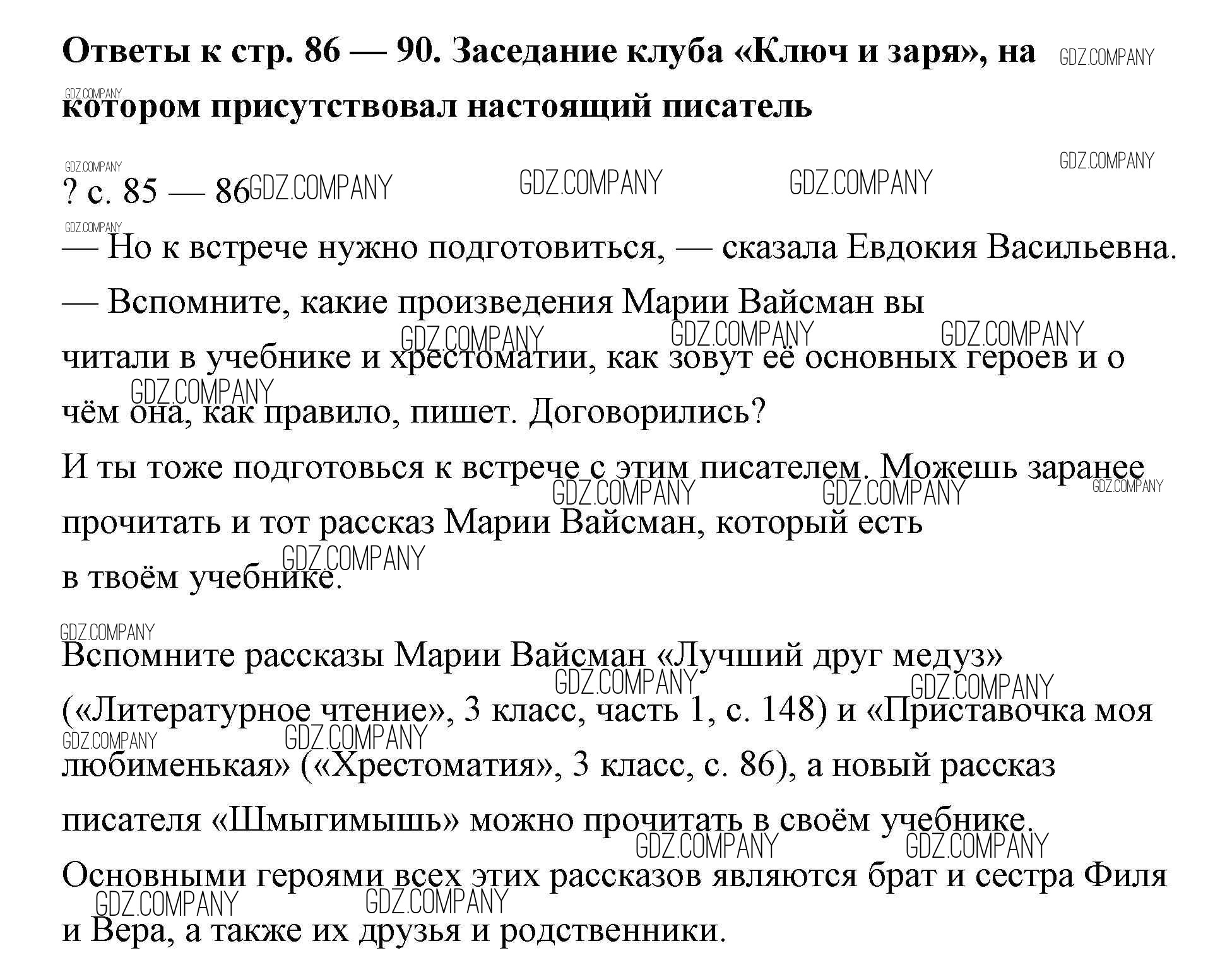Здесь готовые ответы по Литературе за 4 (четвертый) класс от Чуракова Учебник Перспективная начальная школа (издательство: Академкнига от 2017 г.) № 85