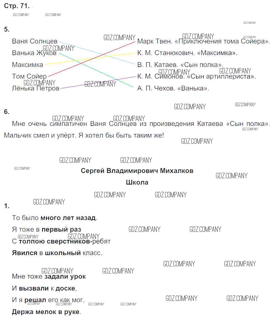Здесь готовые ответы по Литературе за 4 (четвертый) класс от Ефросинина Рабочая тетрадь Начальная школа XXI века (издательство: Вентана-граф от 2020 г.) № 71