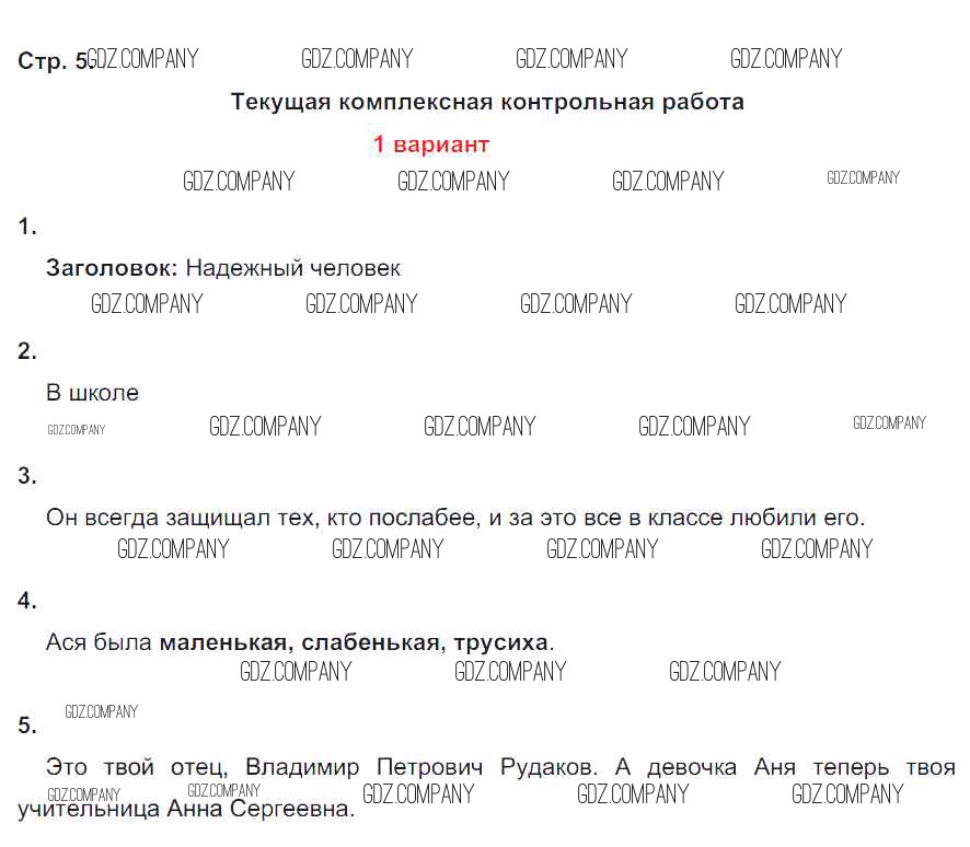 Здесь готовые ответы по Литературе за 4 (четвертый) класс от Ефросинина Тетрадь для контрольных работ УМК (издательство: Вентана-граф от 2019 г.) № 5