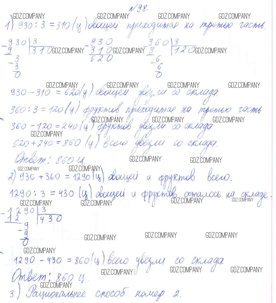 Здесь готовые ответы по Математике за 4 (четвертый) класс от Аргинская, Ивановская, Кормишина Учебник УМК (издательство: Фёдоров от 2014 г.) № 98